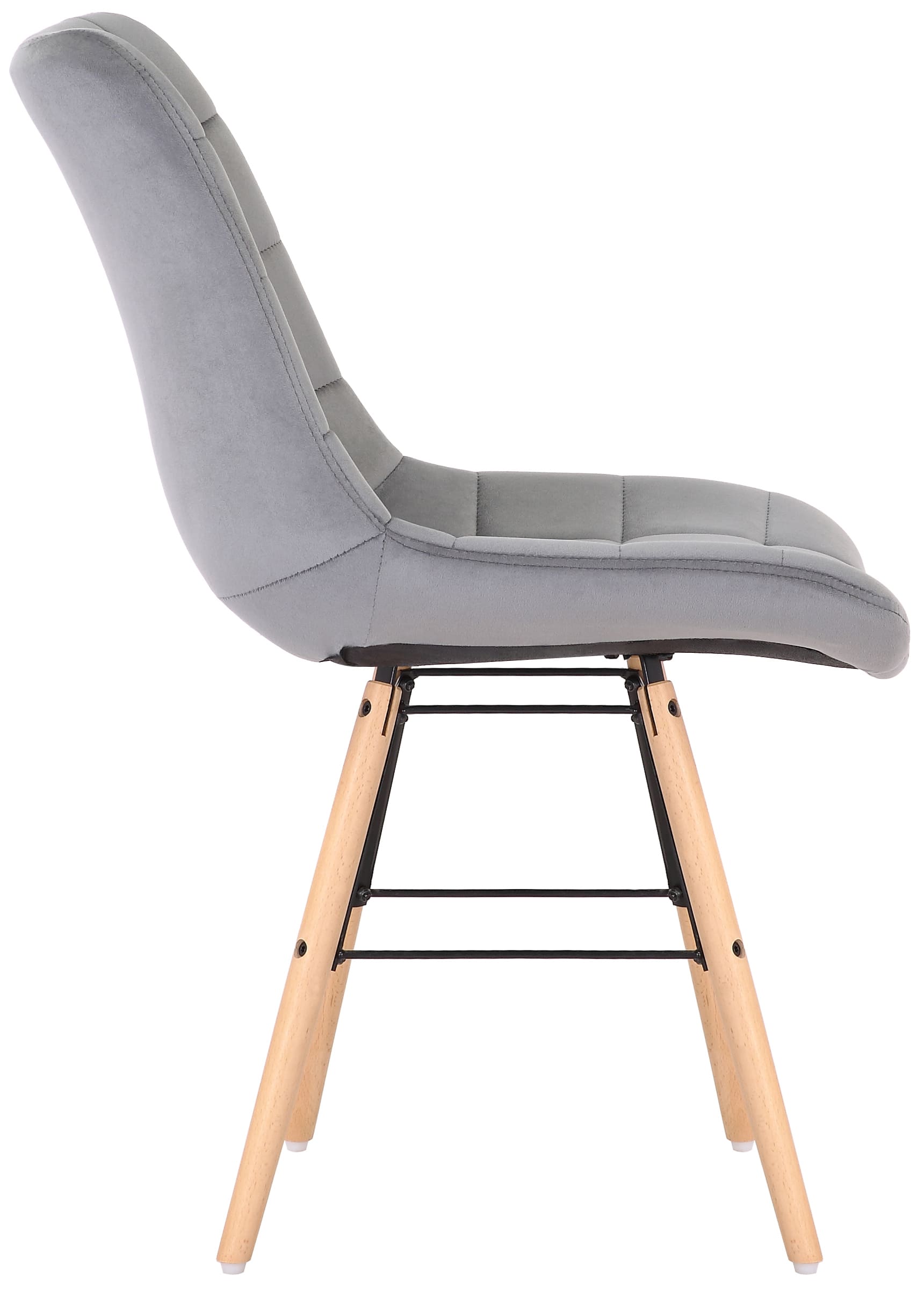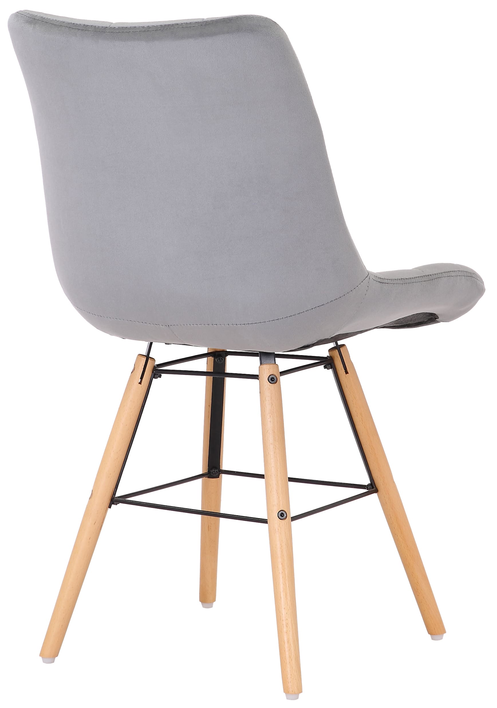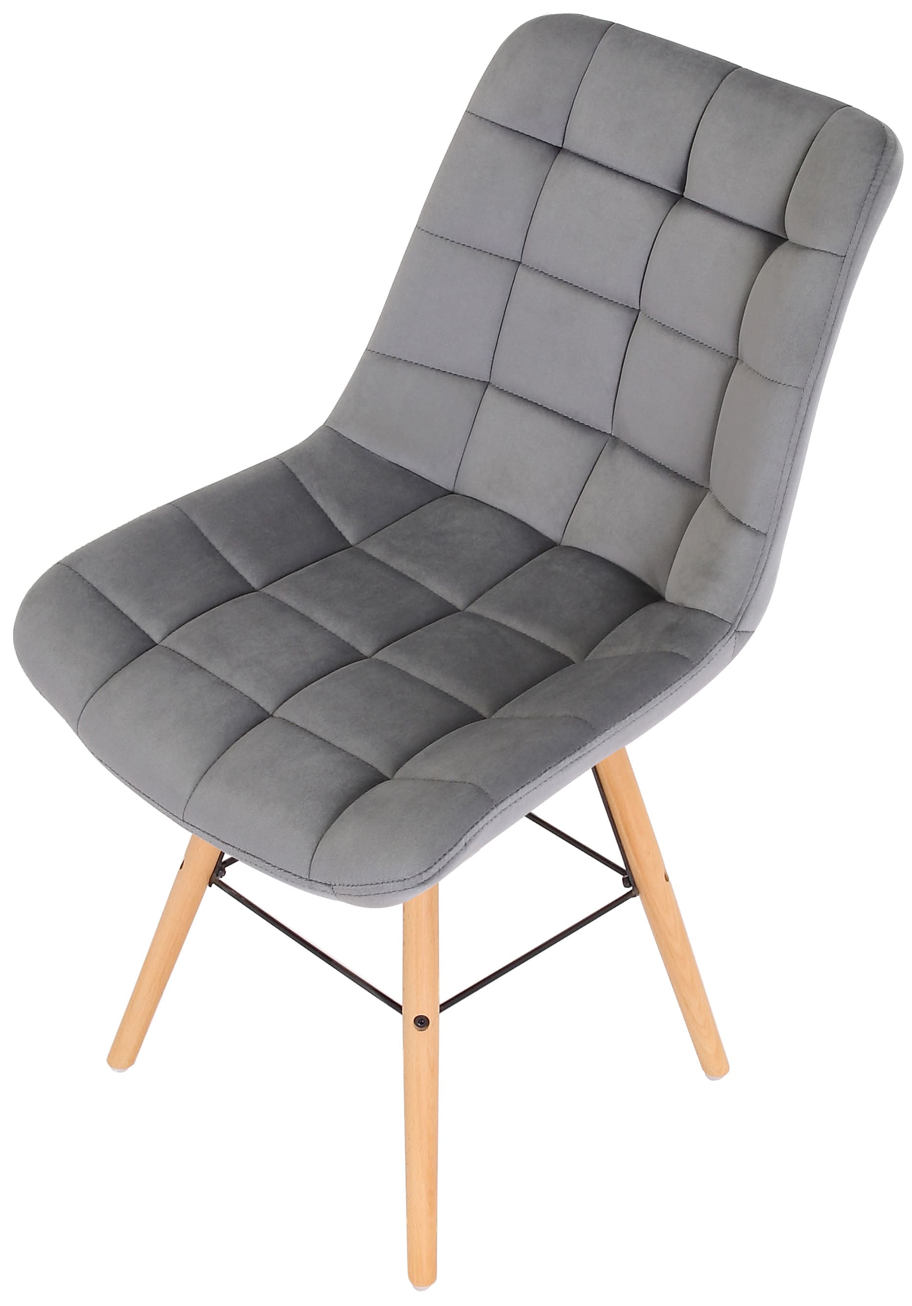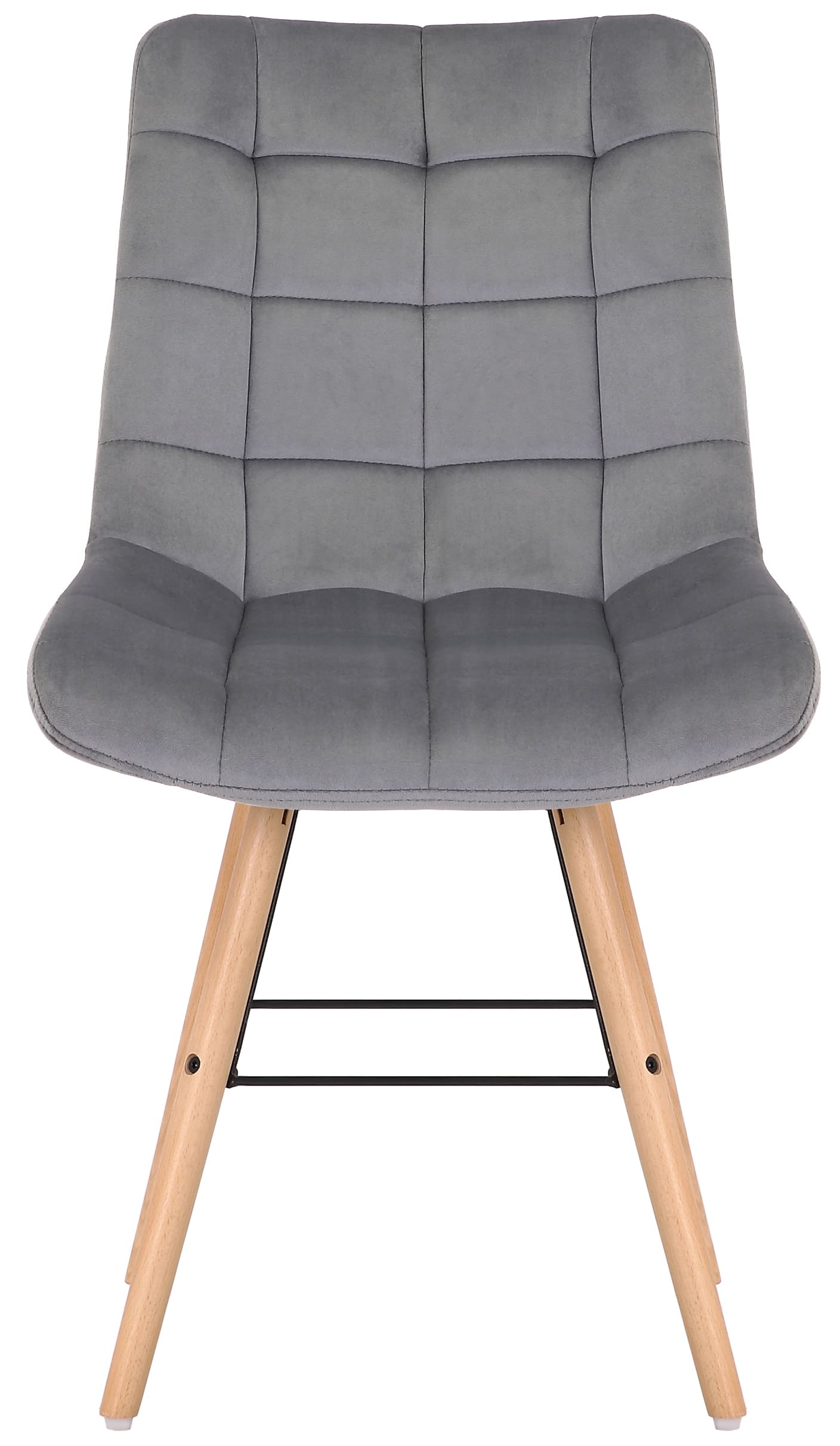 Chaise de salle à manger x1 style scandinave couture carrée en velours gris et pieds en bois 10_0002264