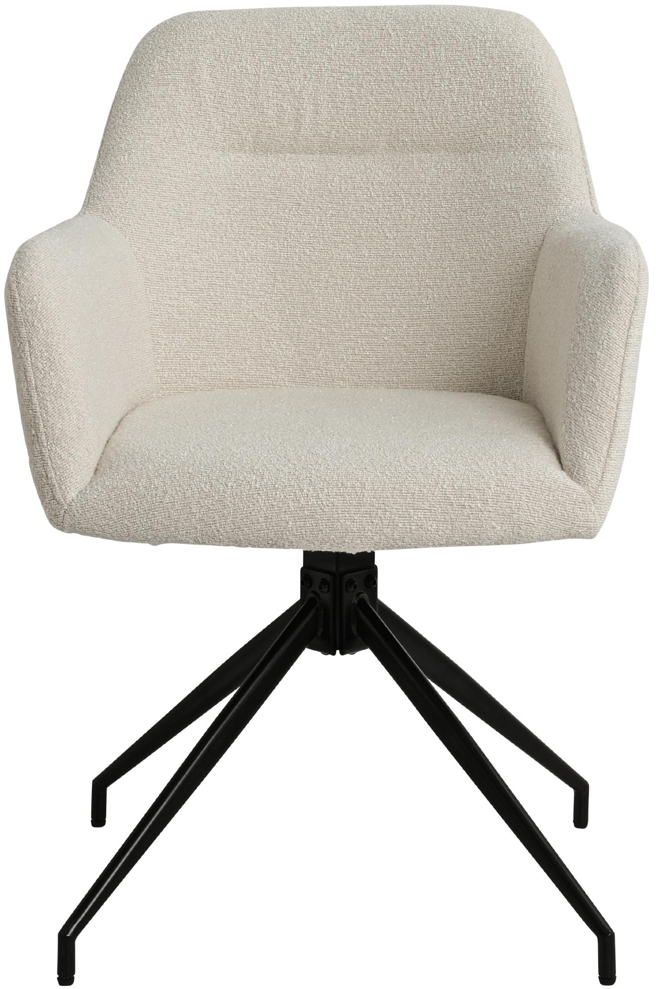 Chaise en tissu bouclette crème avec pied étoile en métal noir – Chaise design moderne 10_0007255