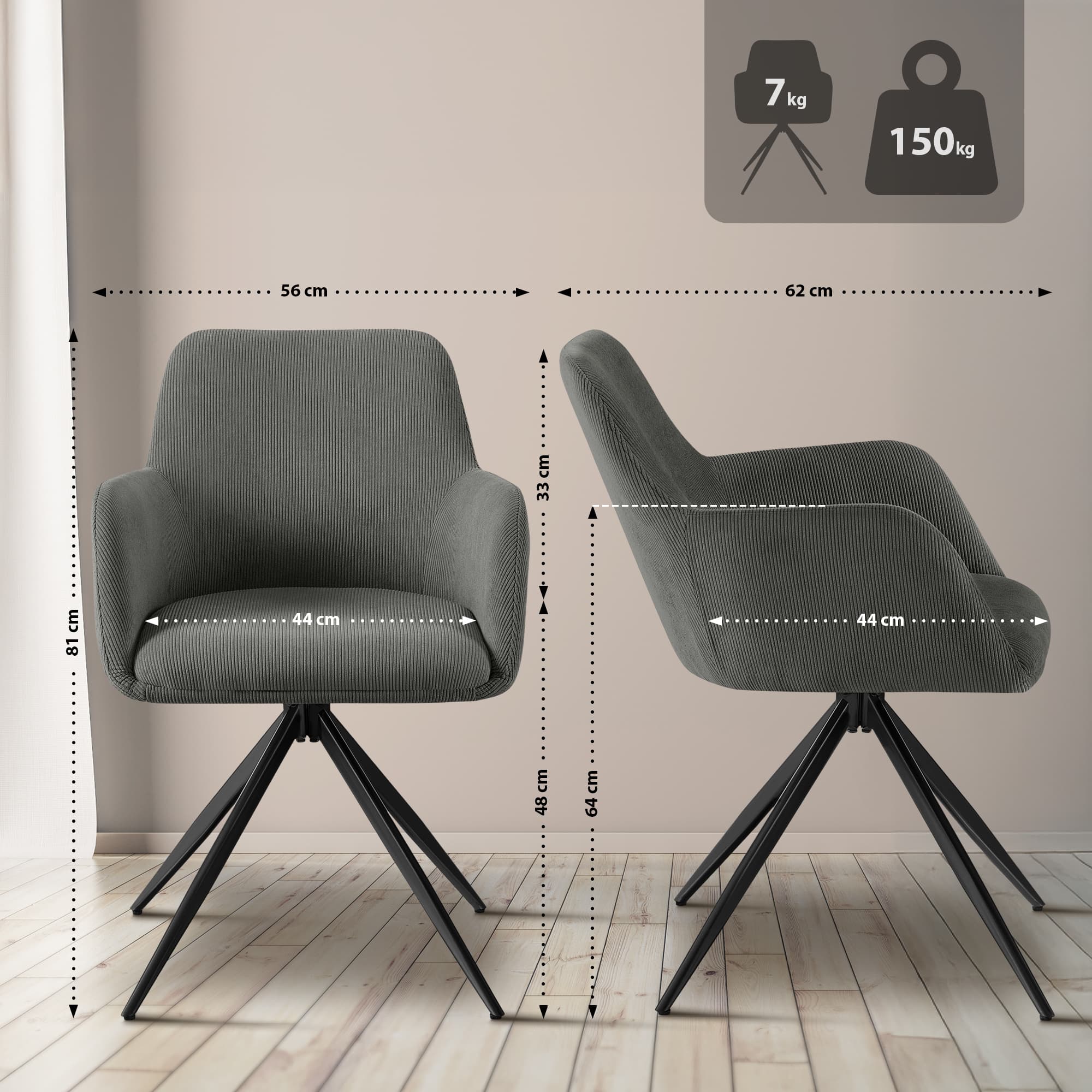 Chaise contemporaine de salle à manger x1 en velours côtelé gris pivotante 180° avec accoudoirs 10_0005551
