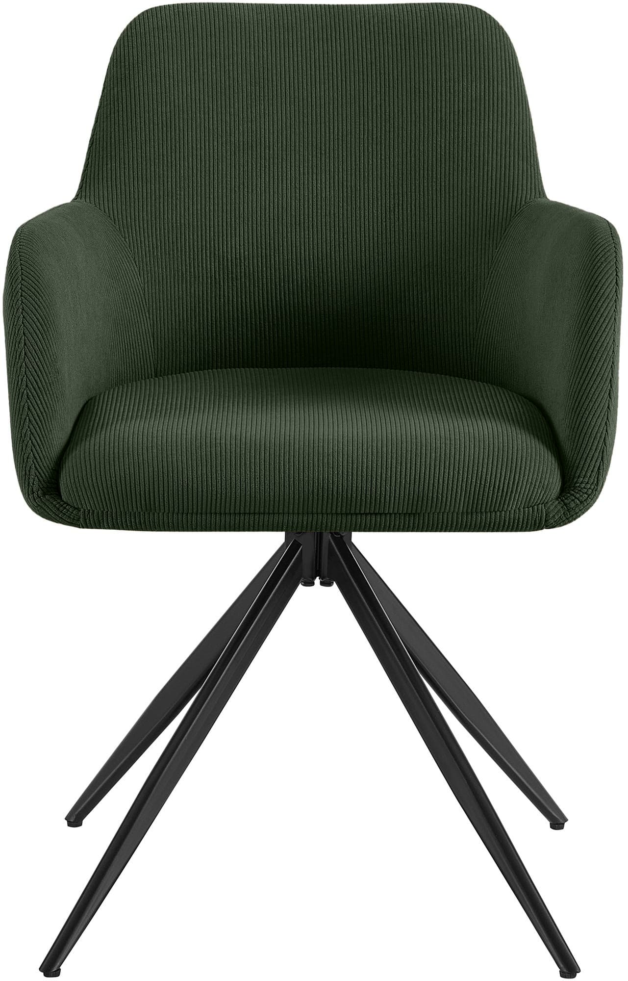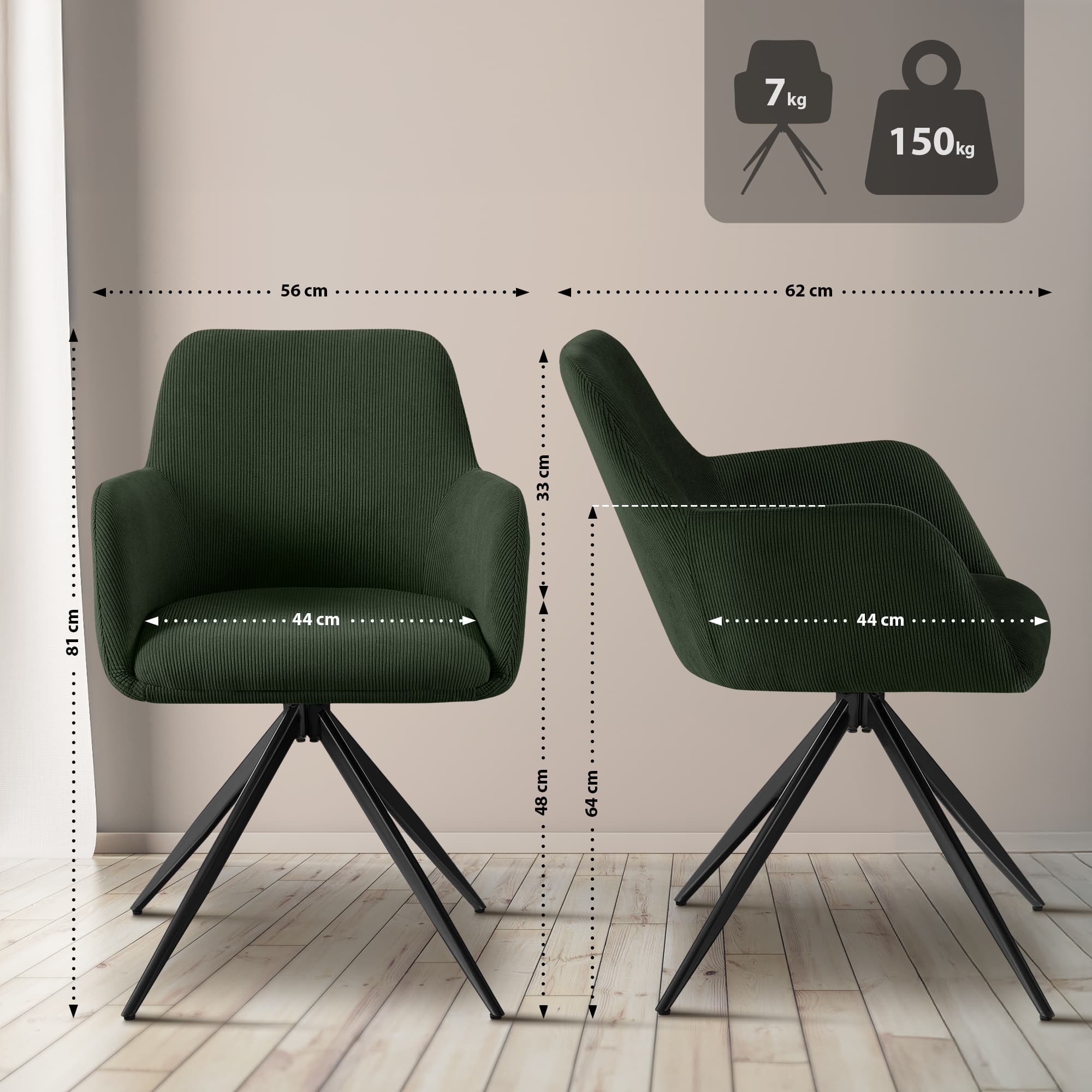 Chaise contemporaine de salle à manger x1 en velours côtelé vert pivotante 180° avec accoudoirs 10_0005549