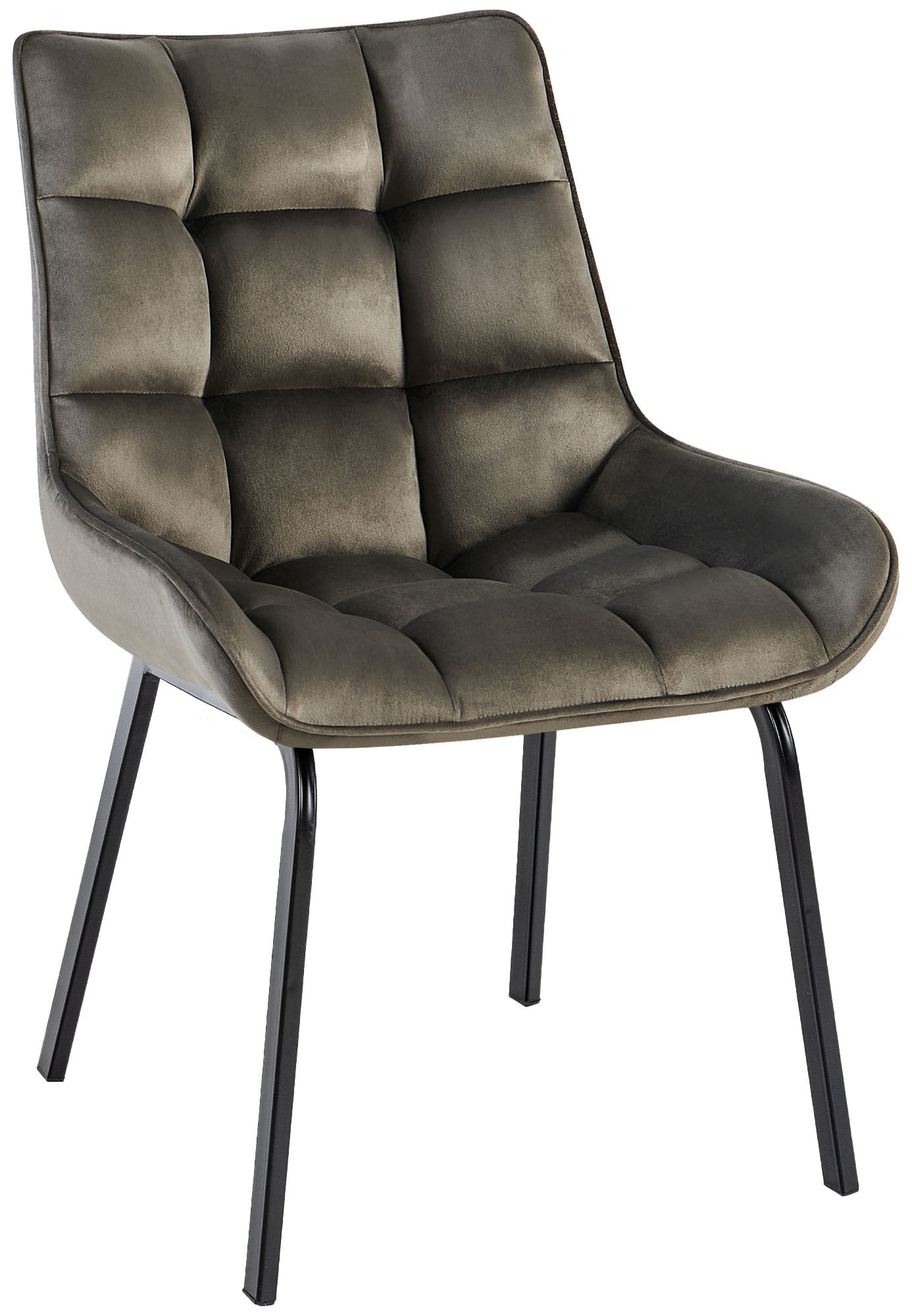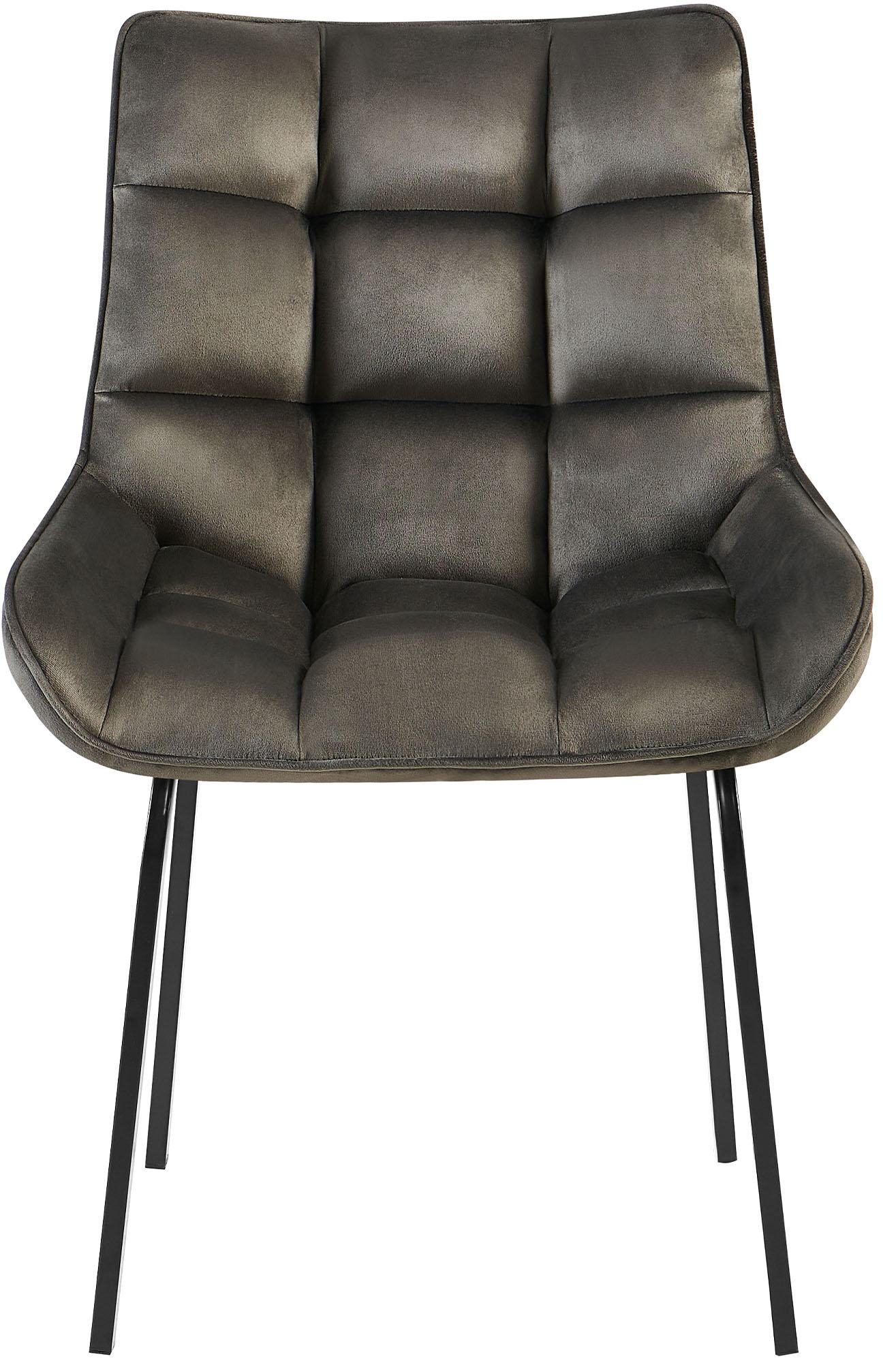 Chaise de salle à manger x1 en velours anthracite généreusement rembourrée piètement en métal noir 10_0007373