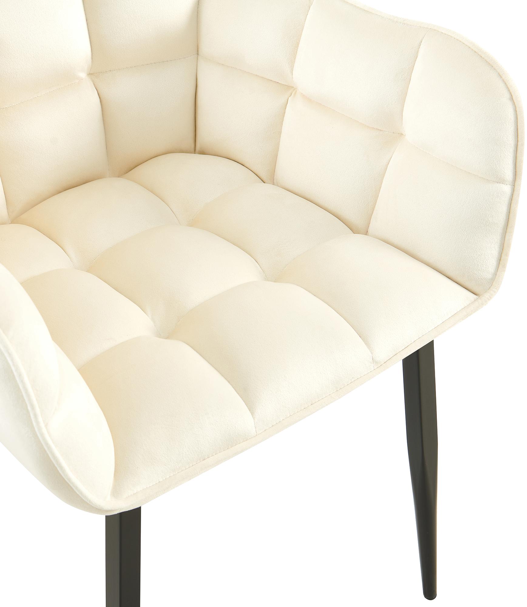 Chaise design rembourrée en velours crème design enveloppant pieds métal noir 10_0007487