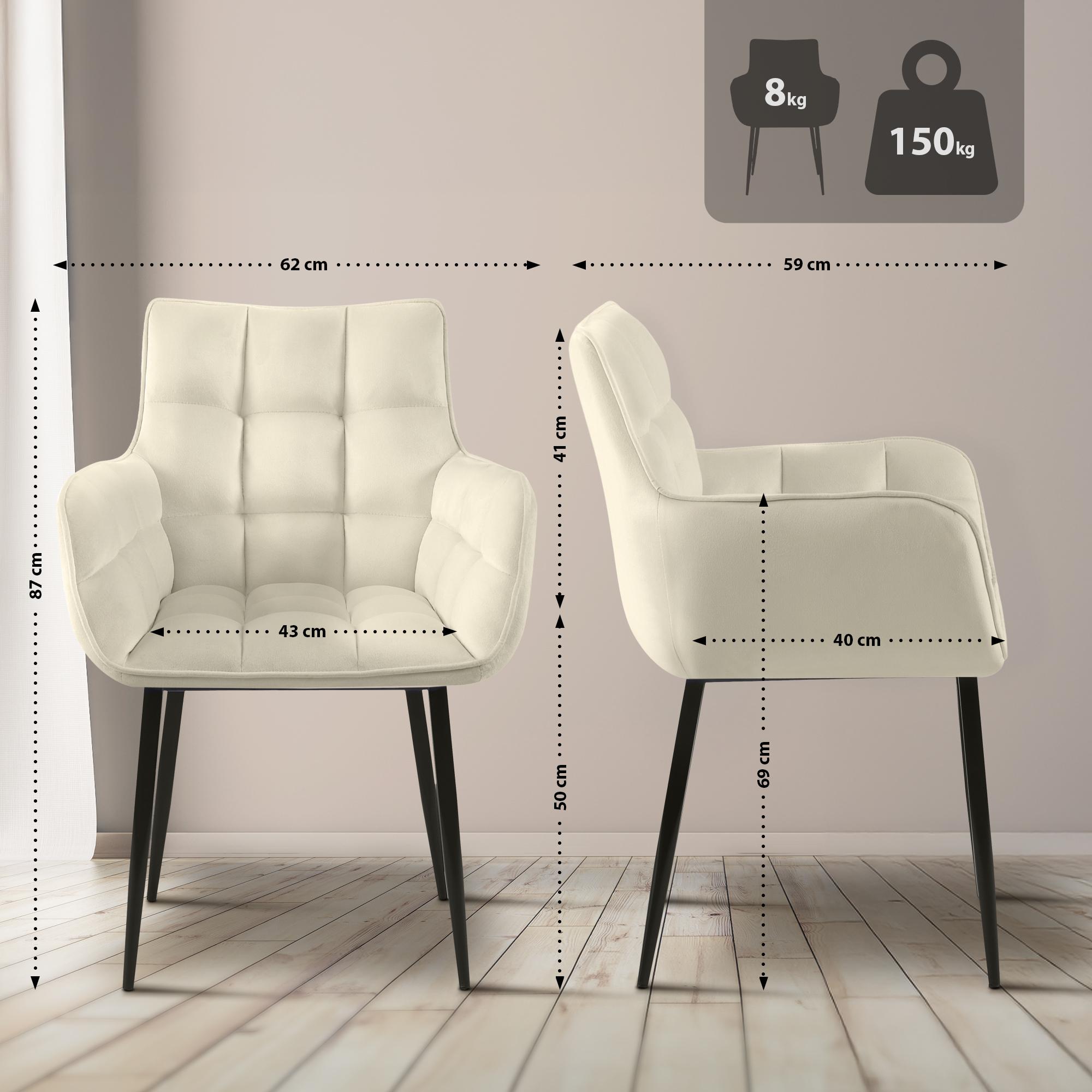 Le rembourrage confortable de l'assise, du dossier et des accoudoirs est essentiel pour une assise confortable. La coque de l'assise et le dossier sont entièrement recouverts de velours. Le motif matelassé à carreaux lui confère une allure élégante.