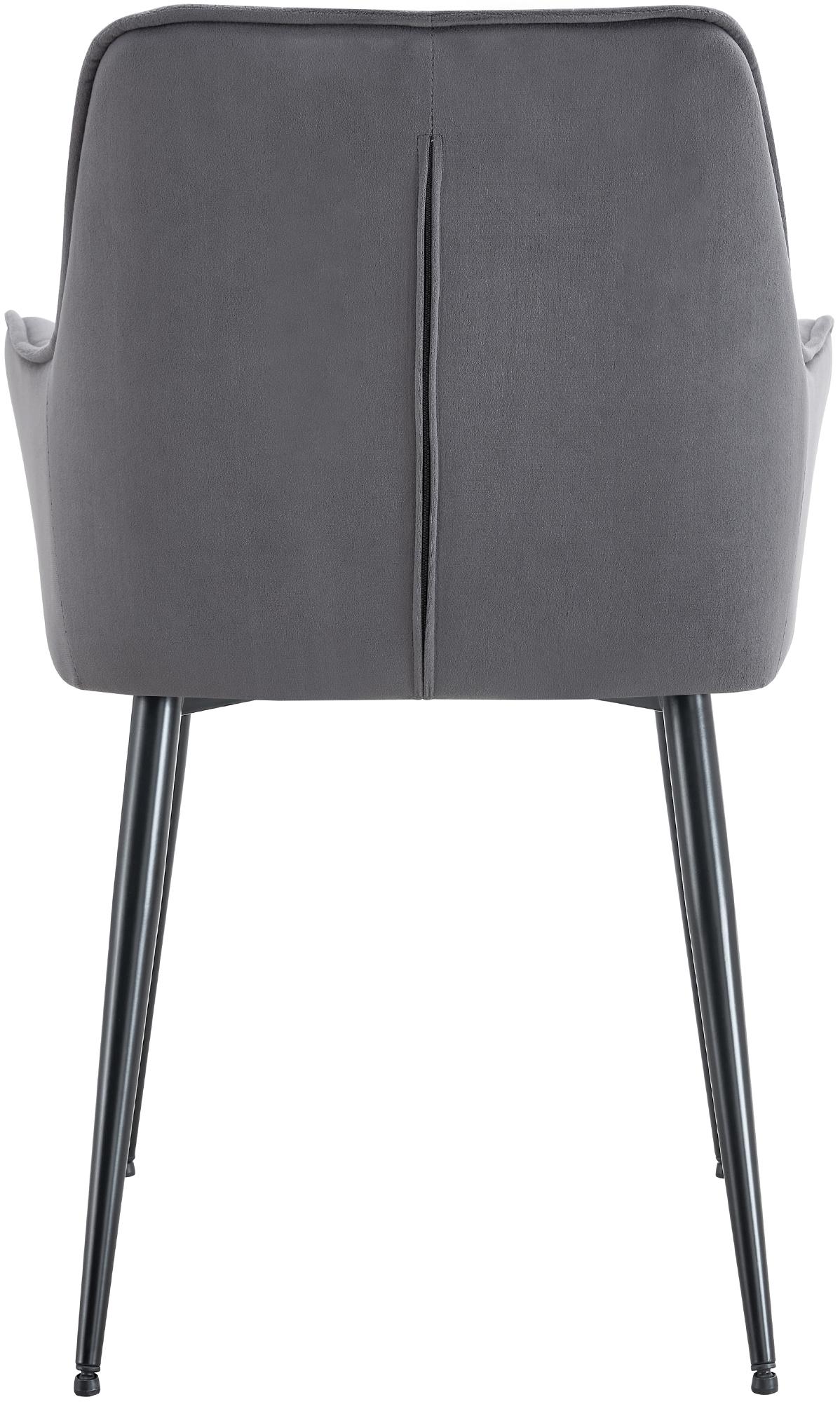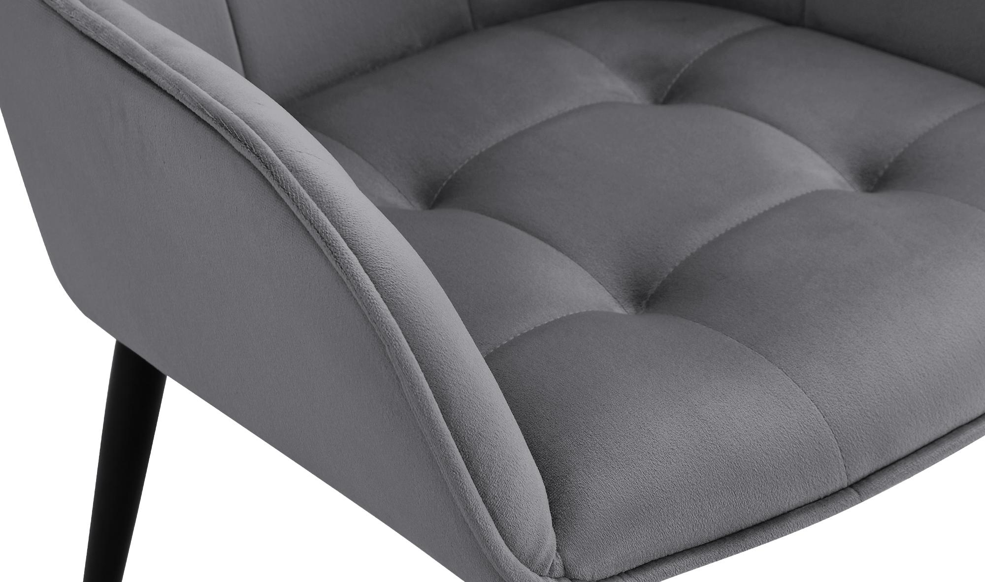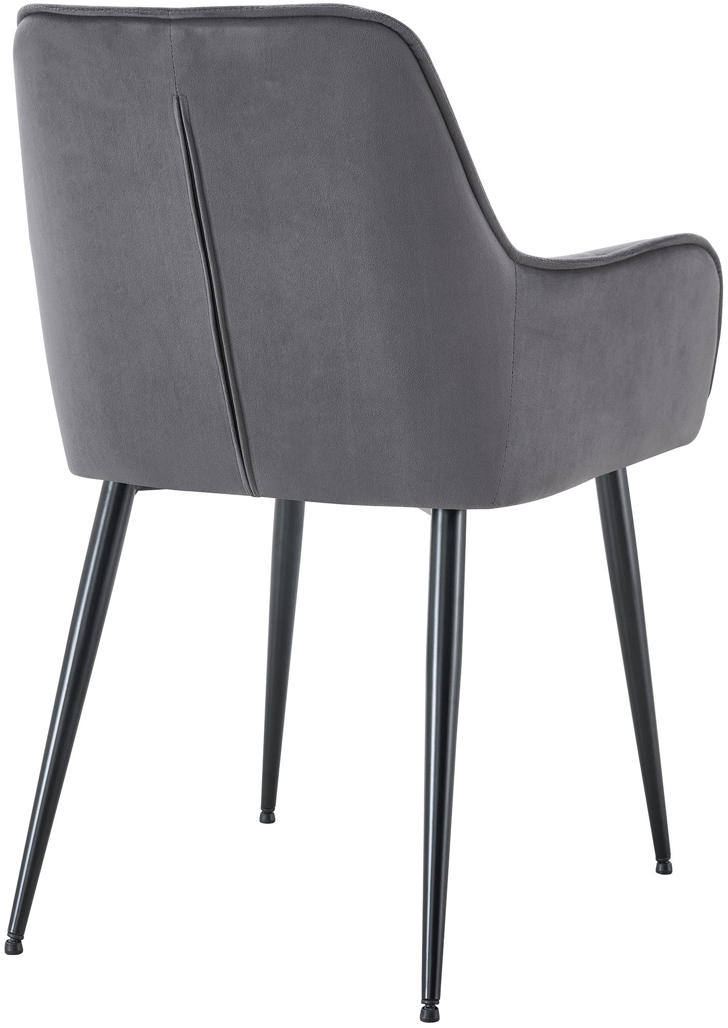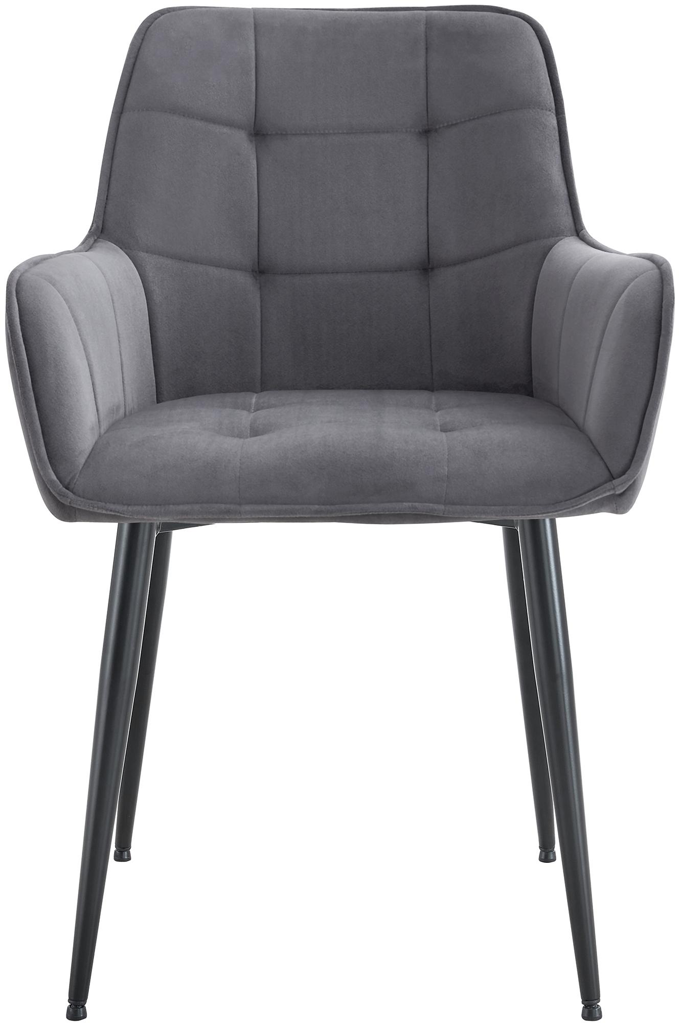 Lot de 2 chaises de salle à manger avec accoudoirs en velours gris foncé capitonné cadre métal noir 10_0007483