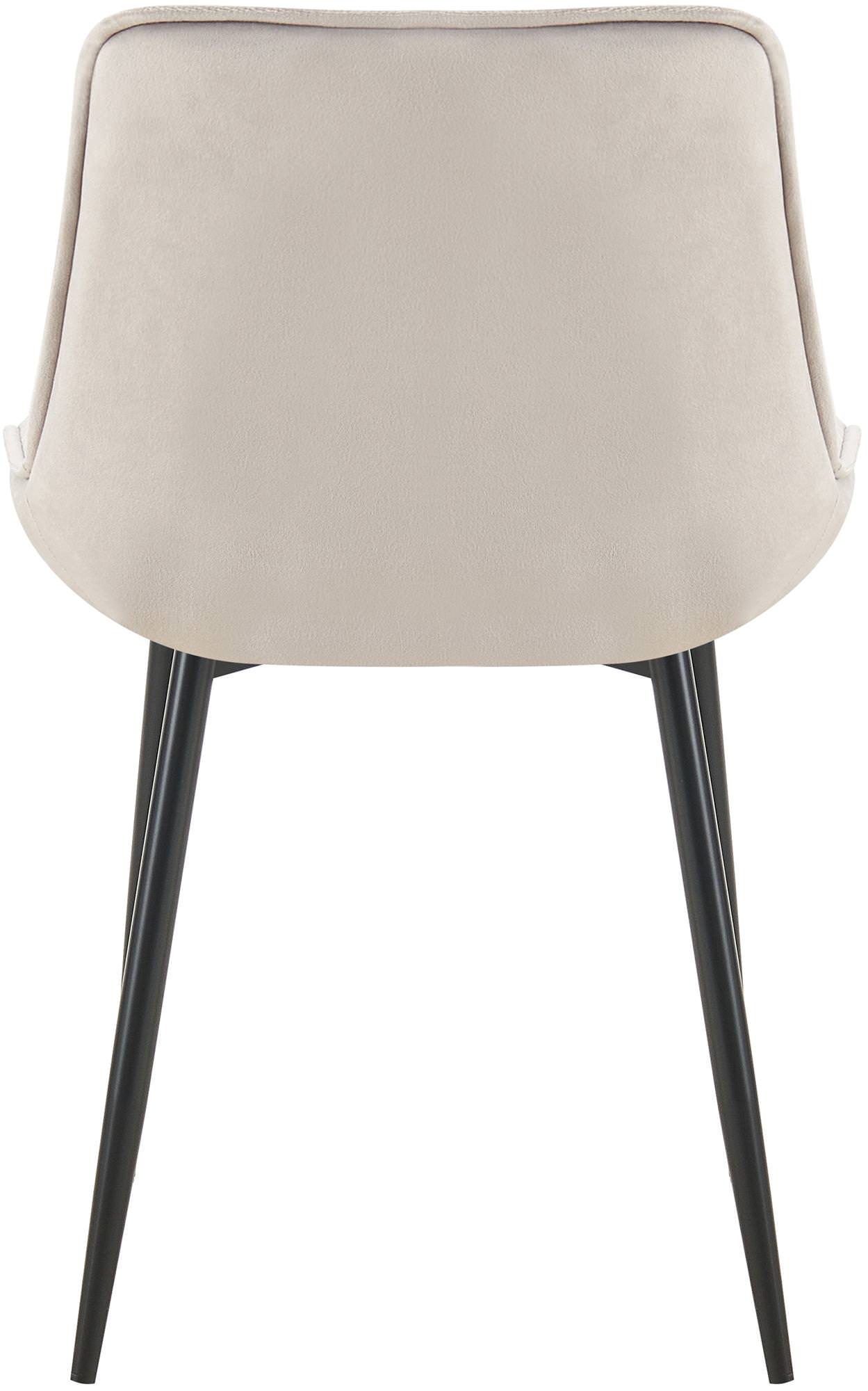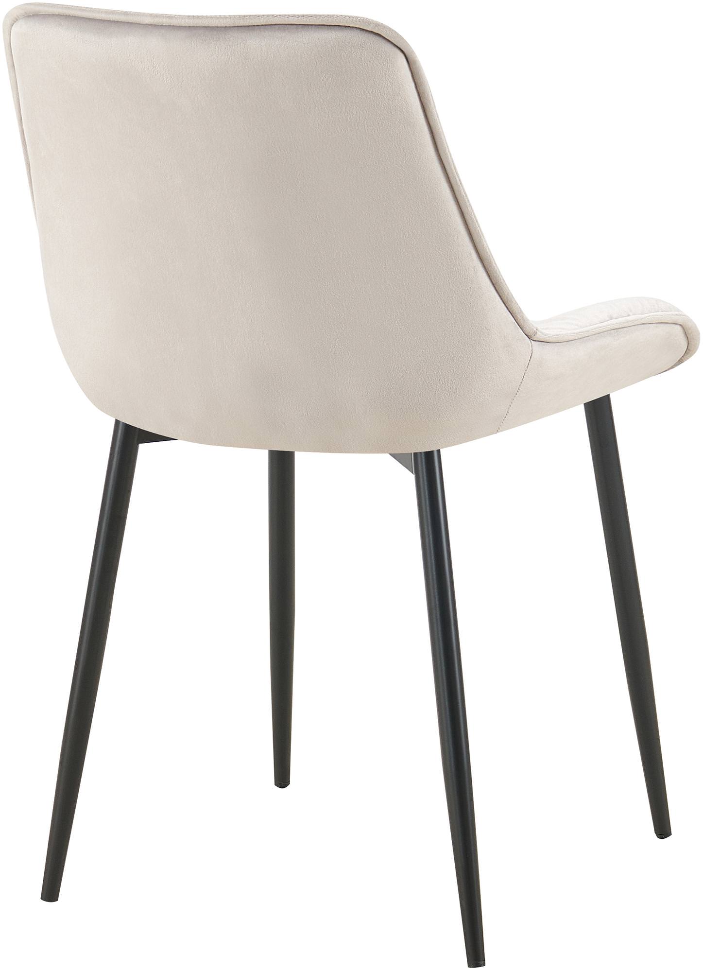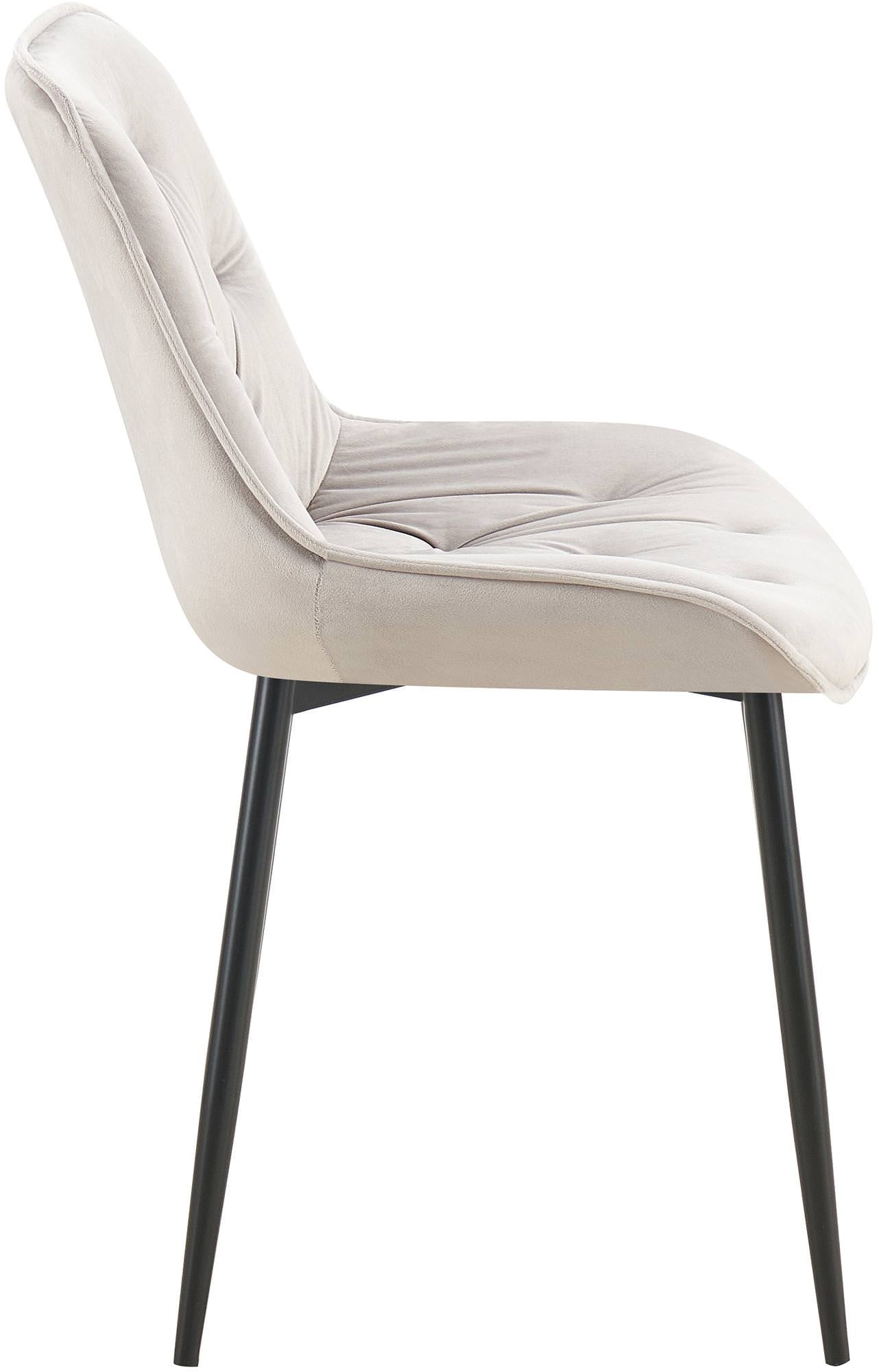 La chaise de salle à manger allie confort d'assise et style moderne. Cette chaise rembourrée est idéale pour votre table de salle à manger, votre cuisine, votre salon et bien plus encore. Le rembourrage agréable de l'assise et du dossier est essentiel pour un confort optimal. L'assise est recouverte de velours facile d'entretien avec un motif matelassé tendance. La base de cette chaise de salle à manger est un cadre stable à quatre pieds noir en métal robuste. Ainsi, la chaise de cuisine peut supporter en toute sécurité une charge allant jusqu'à 120 kg. Les patins de protection protègent les sols fragiles.