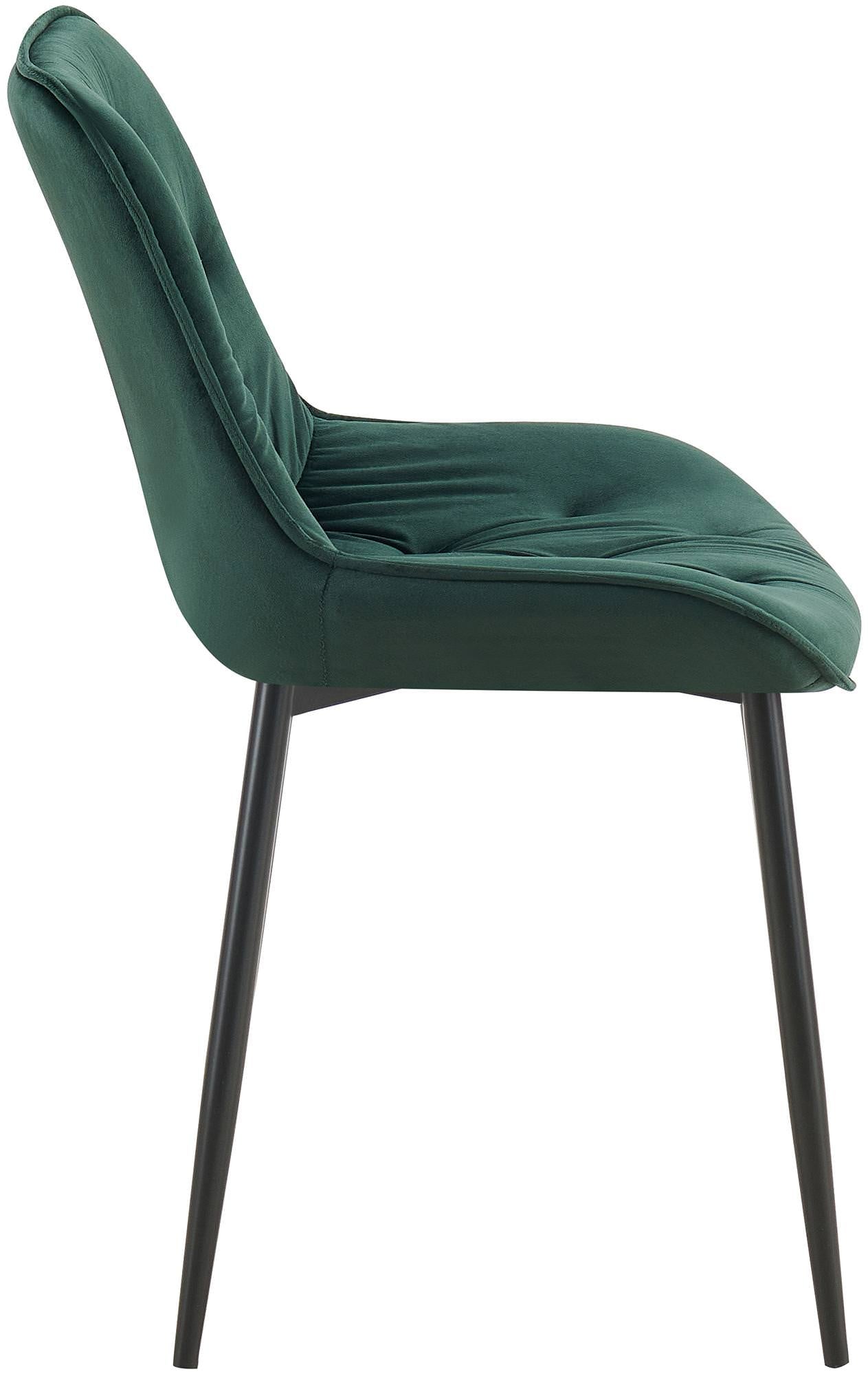La chaise de salle à manger allie confort d'assise et style moderne. Cette chaise rembourrée est idéale pour votre table de salle à manger, votre cuisine, votre salon et bien plus encore. Le rembourrage agréable de l'assise et du dossier est essentiel pour un confort optimal. L'assise est recouverte de velours facile d'entretien avec un motif matelassé tendance. La base de cette chaise de salle à manger est un cadre stable à quatre pieds noir en métal robuste. Ainsi, la chaise de cuisine peut supporter en toute sécurité une charge allant jusqu'à 120 kg. Les patins de protection protègent les sols fragiles.