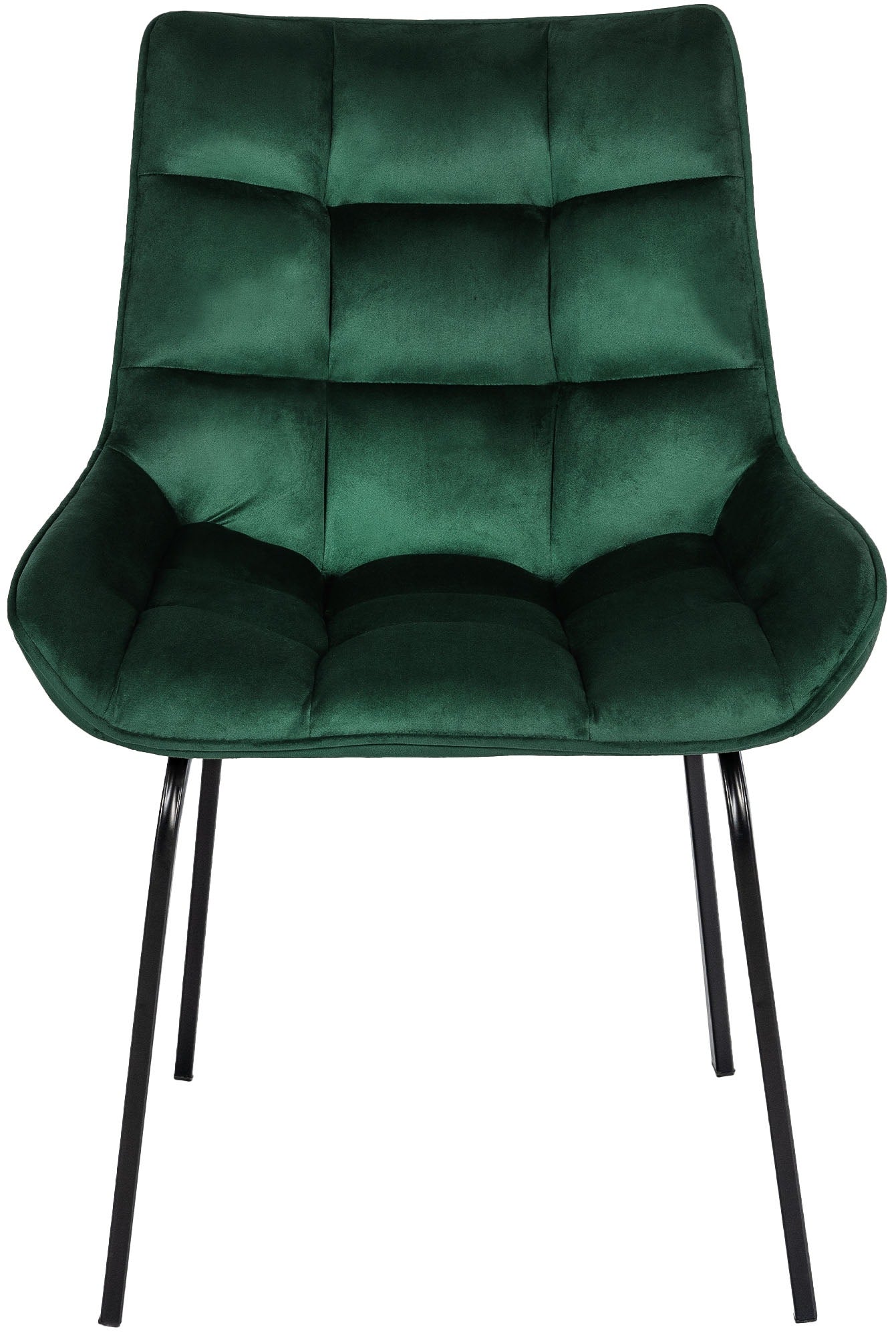Lot de 2 chaises de salle à manger en velours vert généreusement rembourrée piètement en métal noir 10_0007747