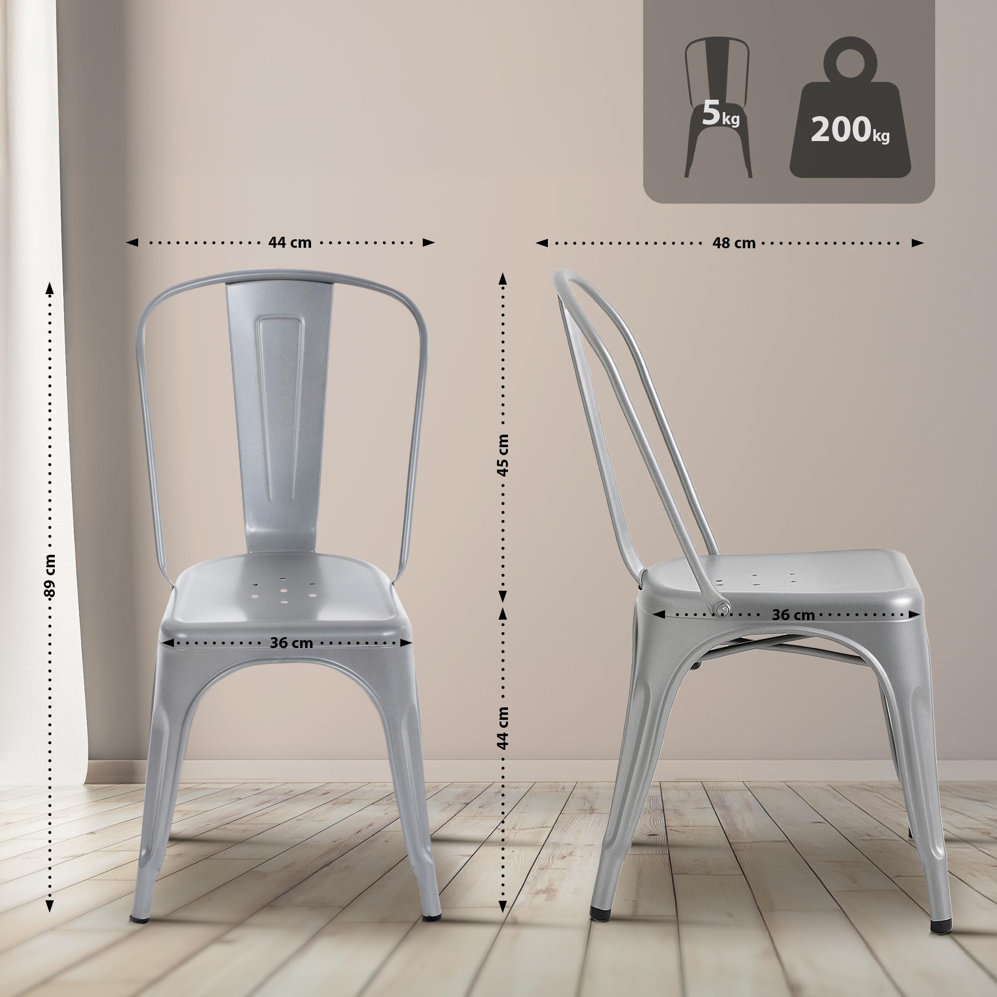 Lot de 4 chaises de salle à manger empilable avec dossier style industriel en métal argenté 10_0006870