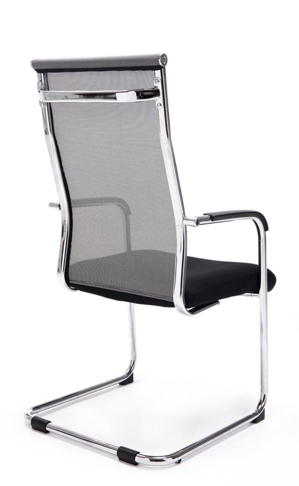 Lot de 2 fauteuils de bureau chaises visiteur avec accoudoirs en maille gris et métal chromé 10_0001890