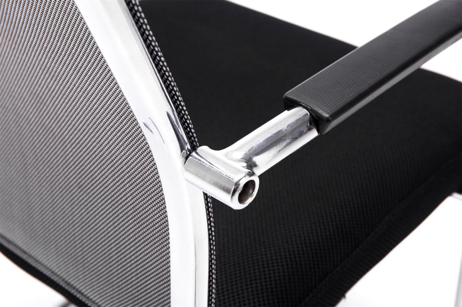 Le piètement est muni de patins de protection de sol et les accoudoirs revêtus pour plus de confort