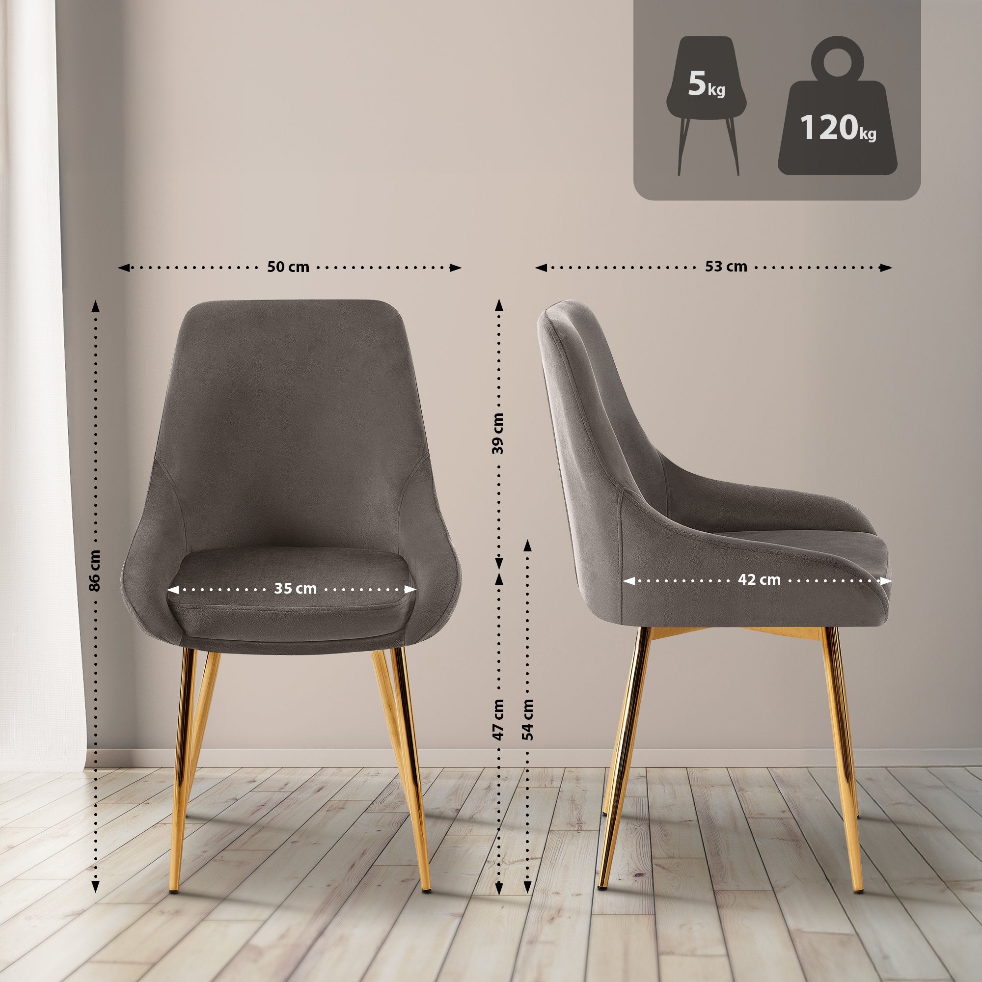 Découvrez un confort d'assise élégant pour votre maison avec le lot de 2 chaises de salle à manger. Ces deux chaises de salle à manger modernes s'intègrent parfaitement à toute salle à manger grâce à leur design élégant et à leur revêtement en velours de haute qualité. Leur fabrication solide et leur construction robuste garantissent une longue durée de vie ; chaque chaise peut supporter jusqu'à 150 kg.