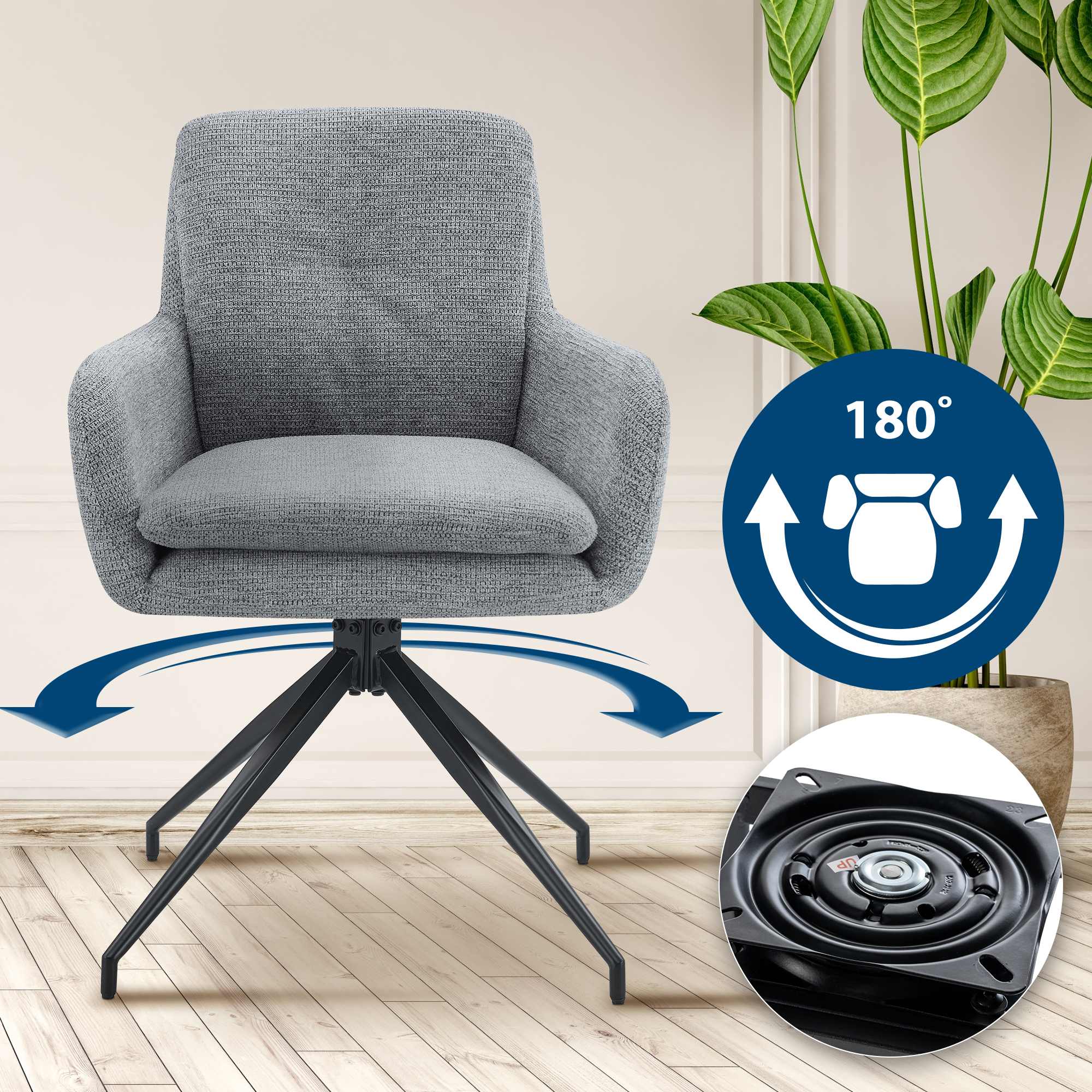 Lot de 2 chaises de salle à manger fonction pivotante confortable et moderne en tissu gris cadre métal 10_0006561