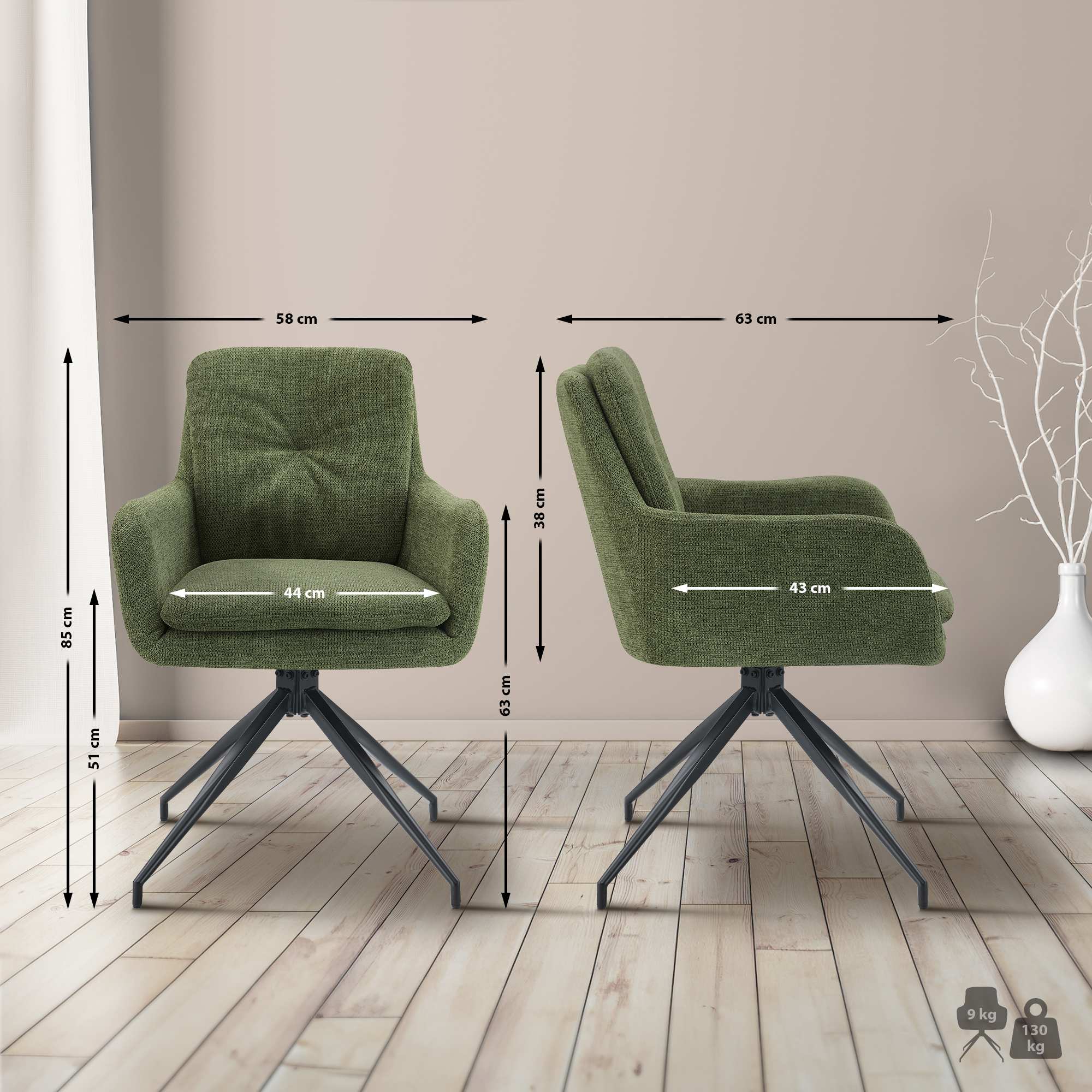 Lot de 2 chaises de salle à manger fonction pivotante confortable et moderne en tissu vert cadre métal 10_0005890