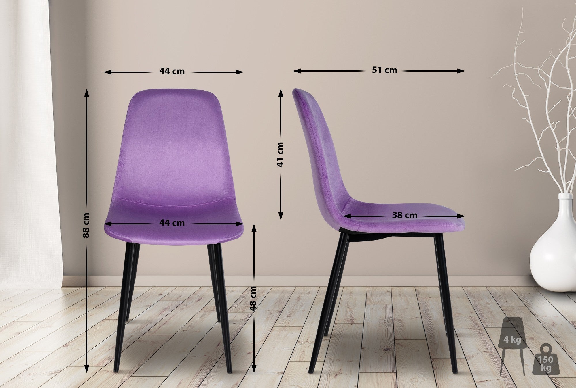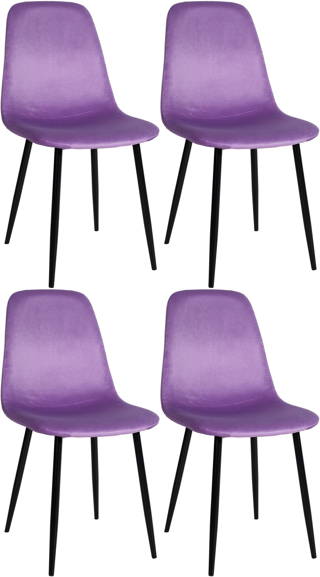 Lot de 4 chaises de salle à manger design simple avec pieds en métal noir et assise en tissu violet 10_0001831