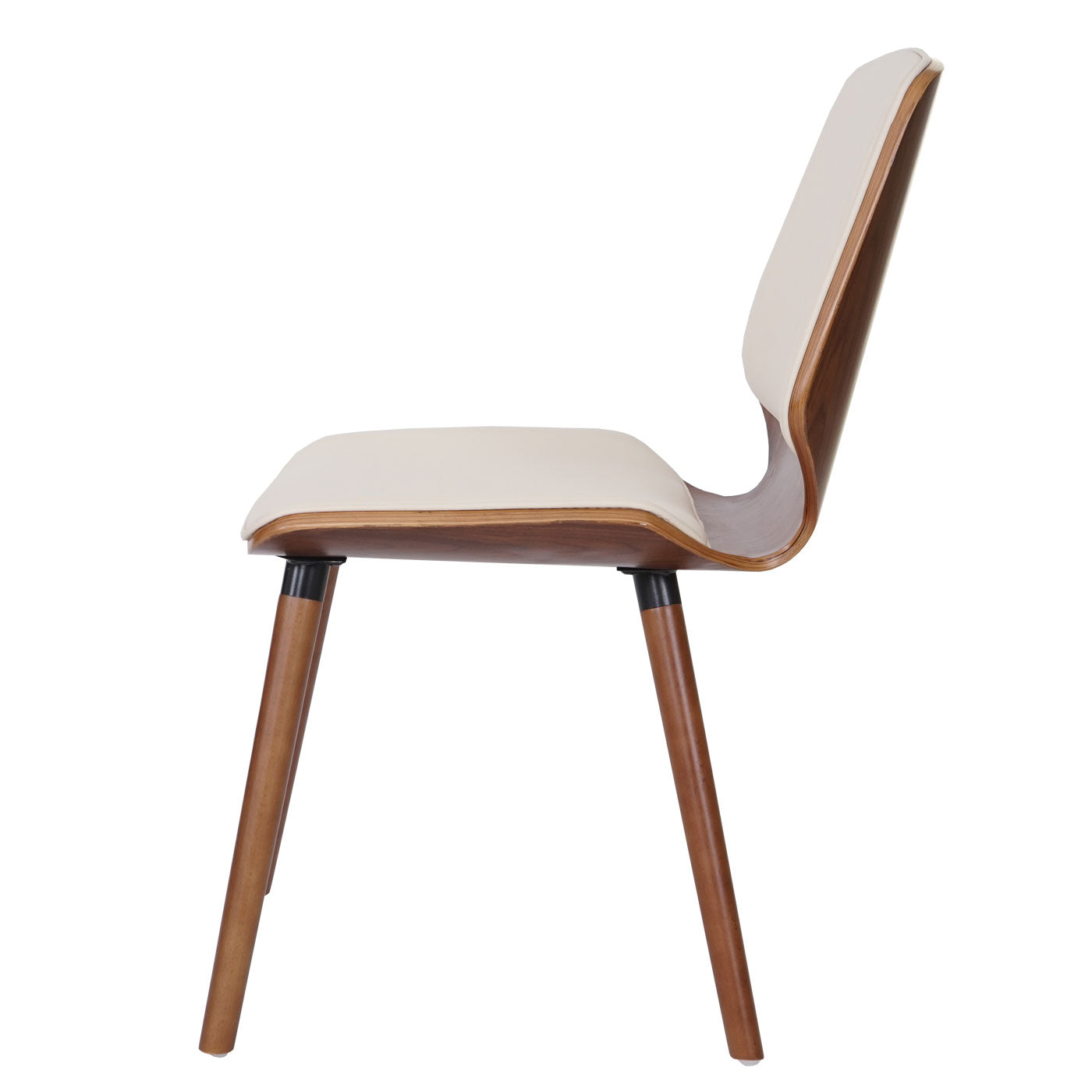 Lot de 2 chaises de salle à manger bois courbé design rétro aspect noyer assise en PVC crème 04_0000336
