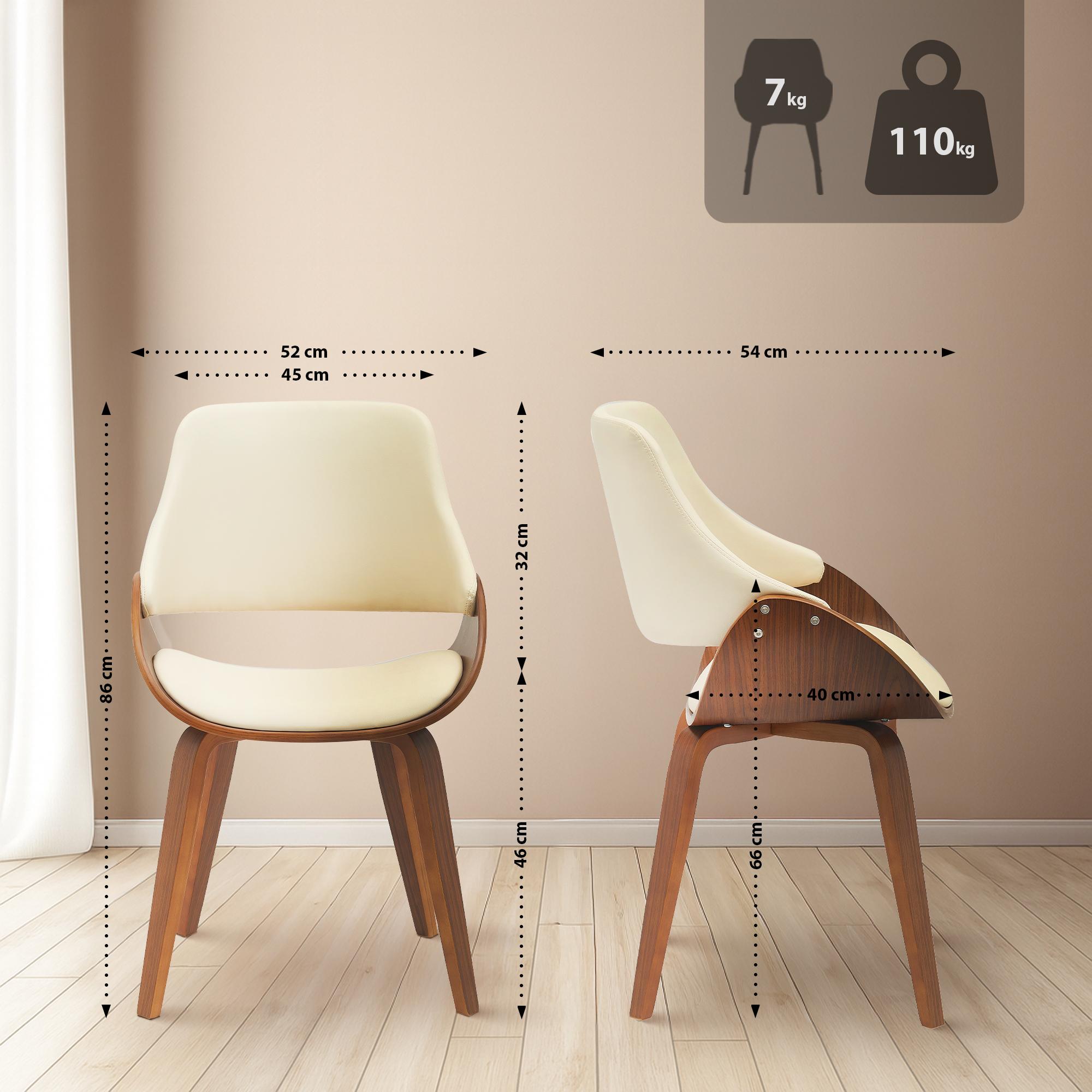 Chaises de salle à manger x2 design scandinave en bois courbé couleur noyer et PVC crème 10_0007600