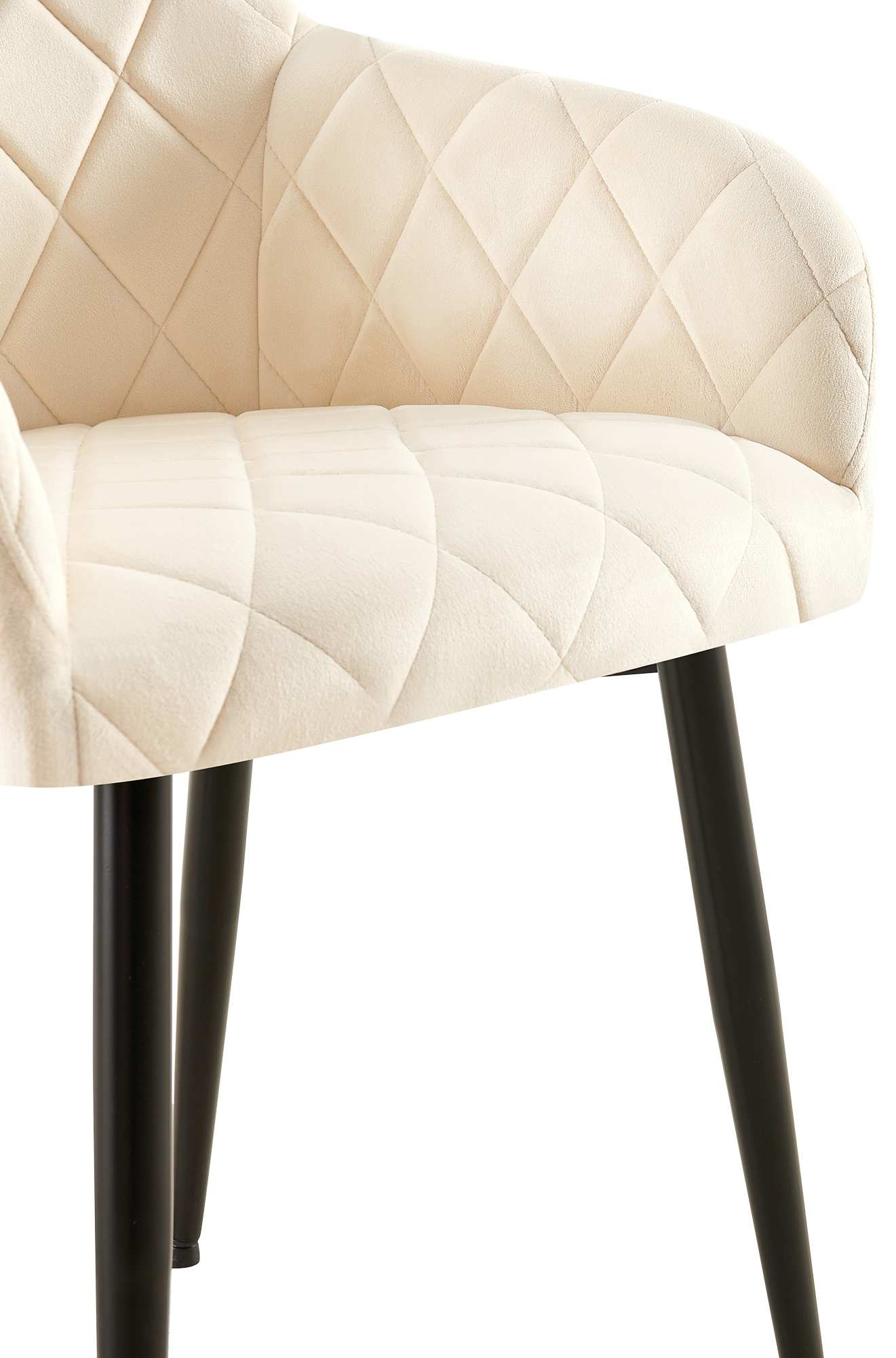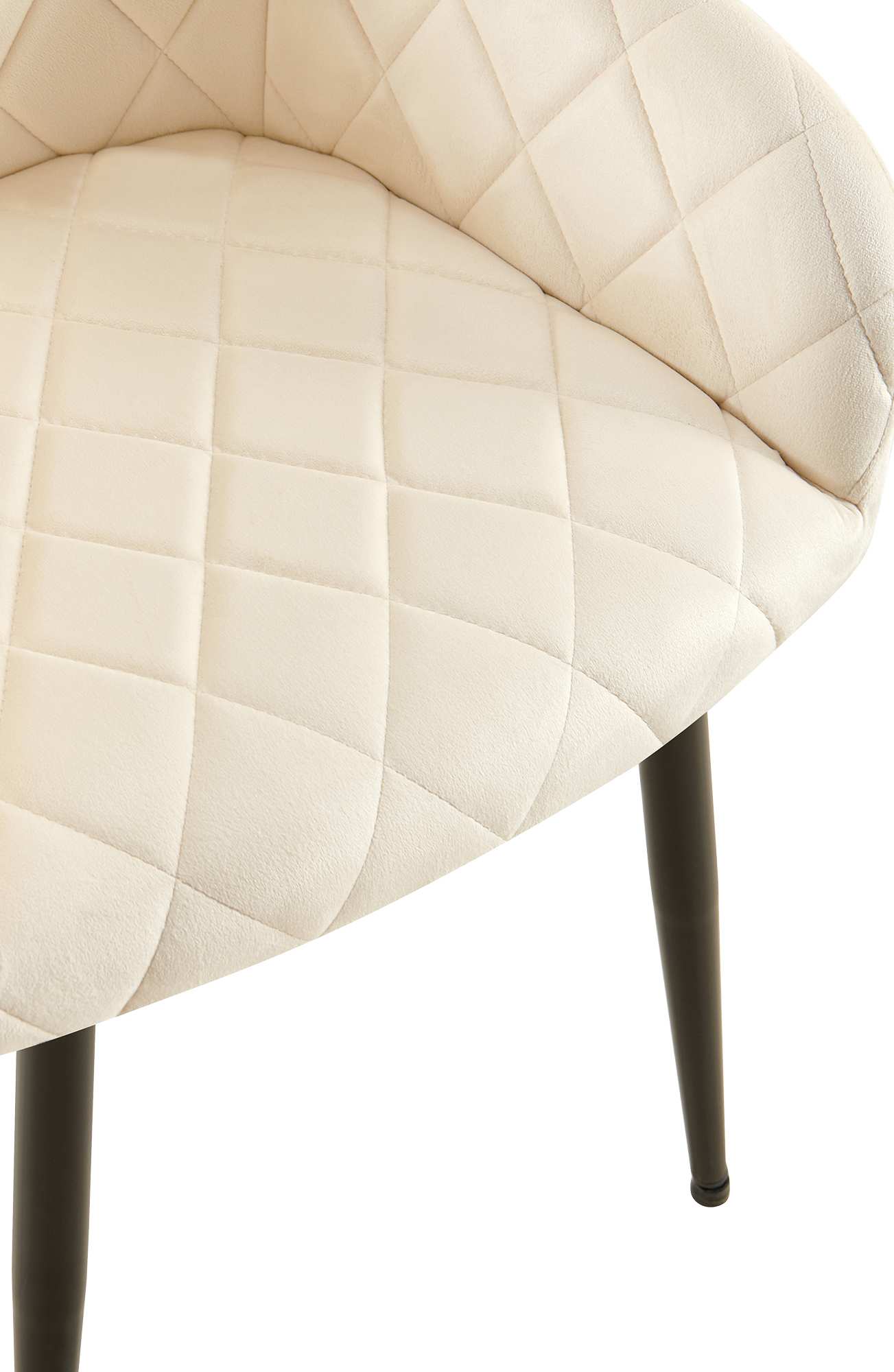 Lot de 2 chaises de salle à manger en velours crème avec coutures décoratives en losange pieds noir chic et contemporain 10_0007651