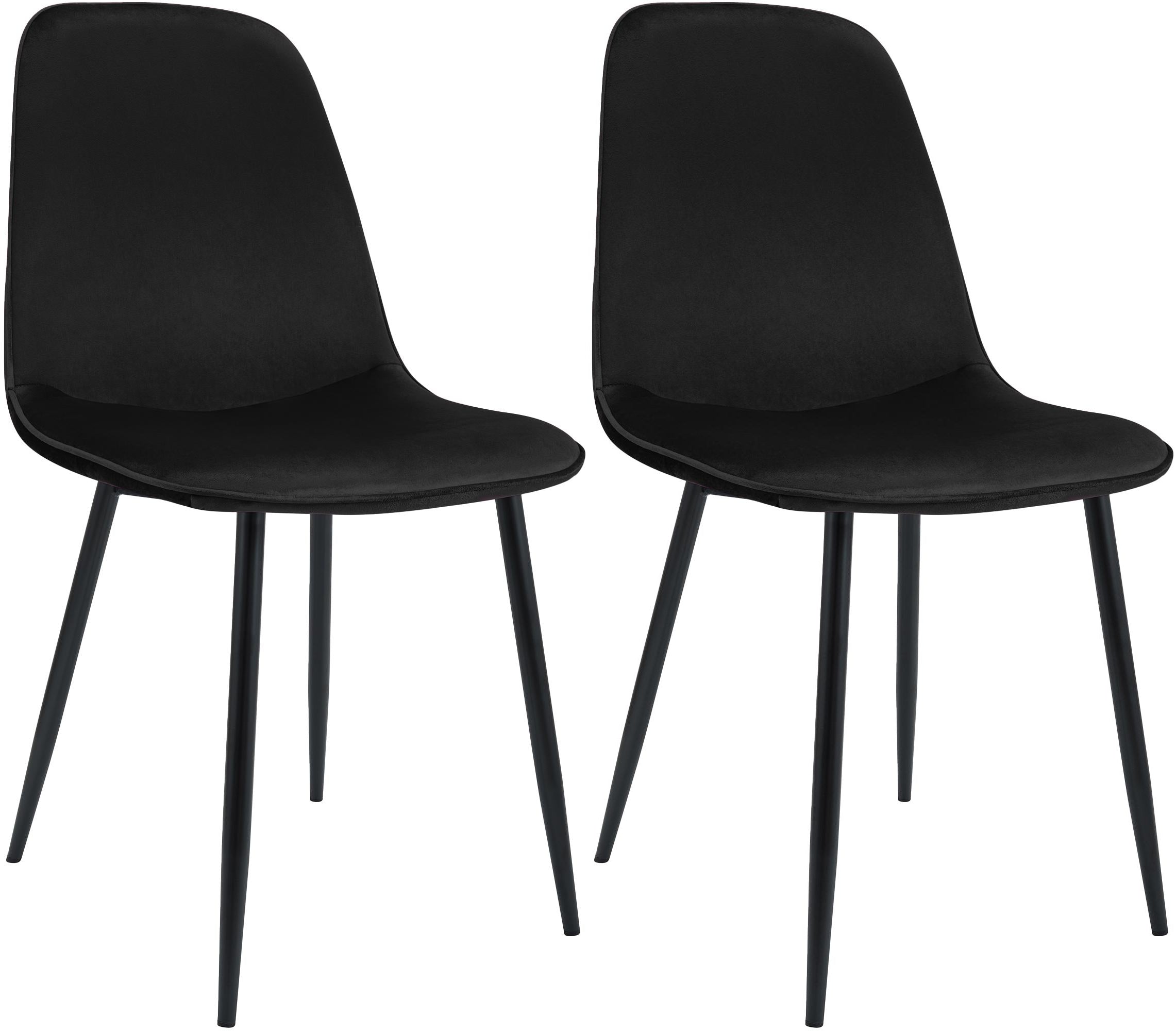 Lot de 2 chaises de salle à manger élégantes et minimalistes en velours noir cadre en métal noir 10_0007375
