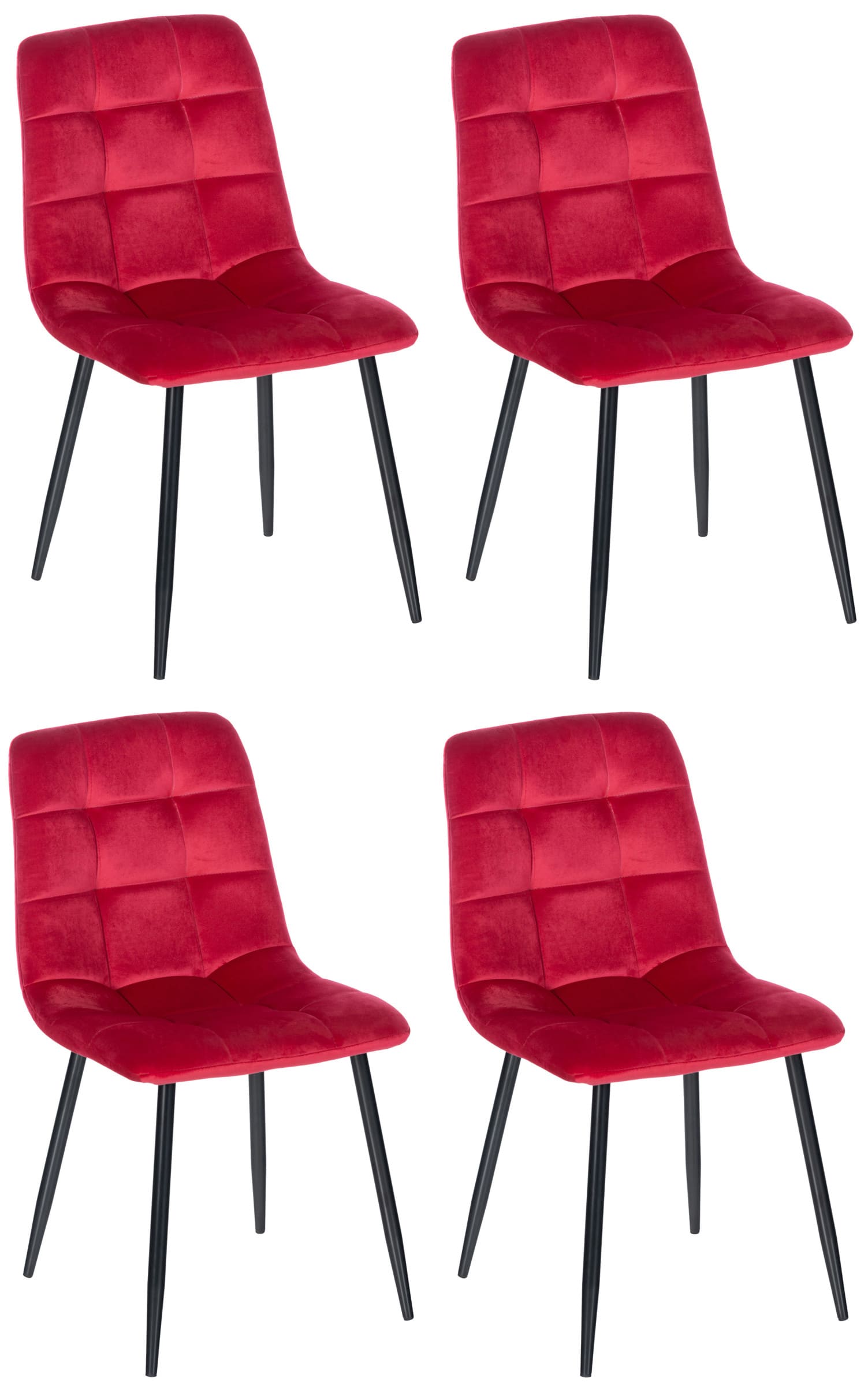Lot de 4 chaises de salle à manger style moderne et confortable en velours rouge et métal noir 10_0001790