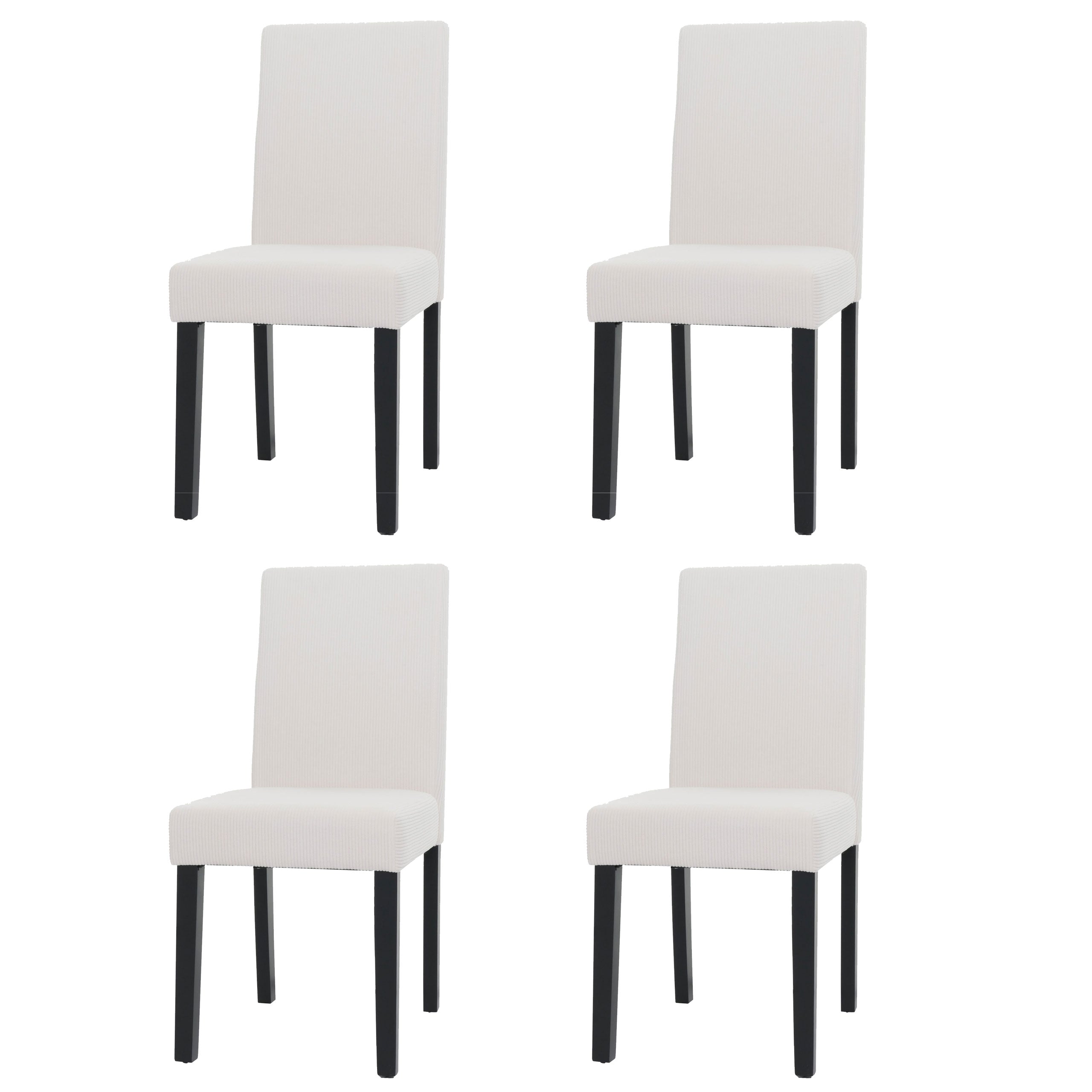 Lot de 4 chaises de salle à manger dossier haut en tissu velours côtelé crème pieds foncés 04_0007520