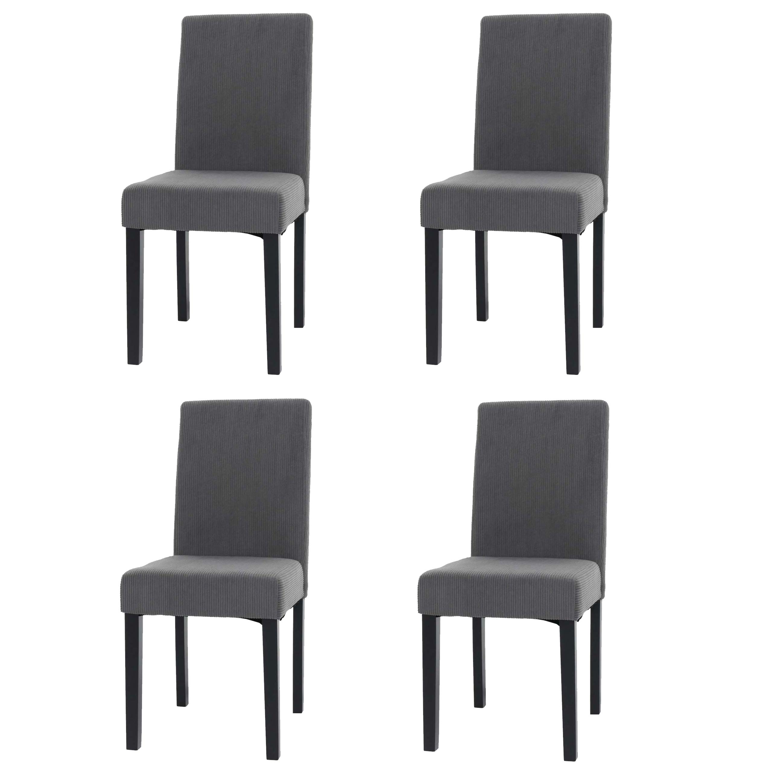 La chaise de salle à manger est livrée par lot de quatre et impressionne par son revêtement moderne en tissu velours côtelé avec une surface structurée et un toucher agréable. Le rembourrage confortable et le dossier haut assurent un confort d'assise optimal.
