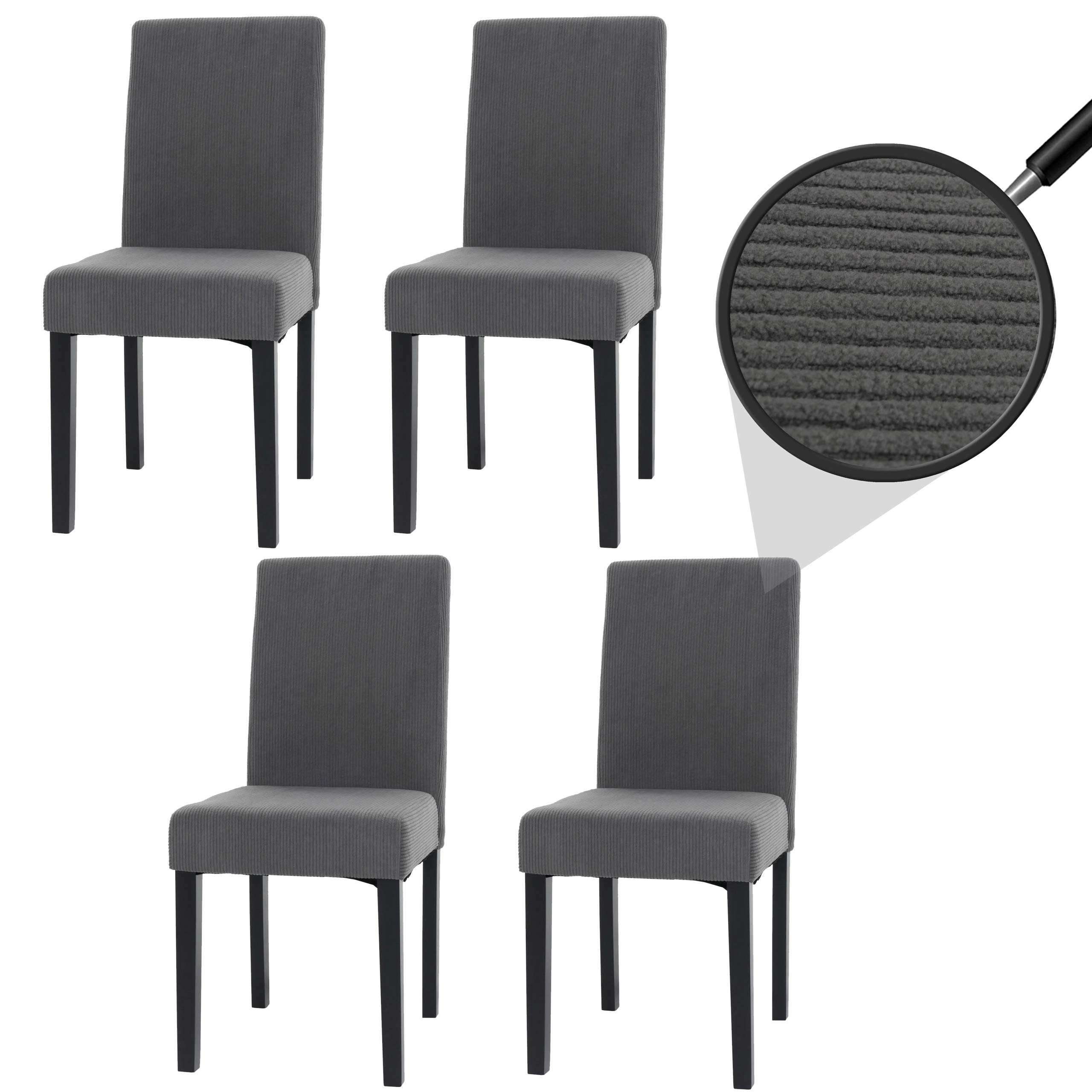 Lot de 4 chaises de salle à manger dossier haut en tissu velours côtelé gris foncé pieds foncés 04_0007522