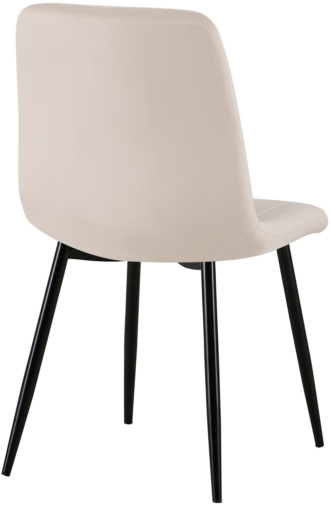 Lot de 4 chaises de salle à manger coutures décoratives verticales en tissu velours crème et pieds métal noir 10_0001868