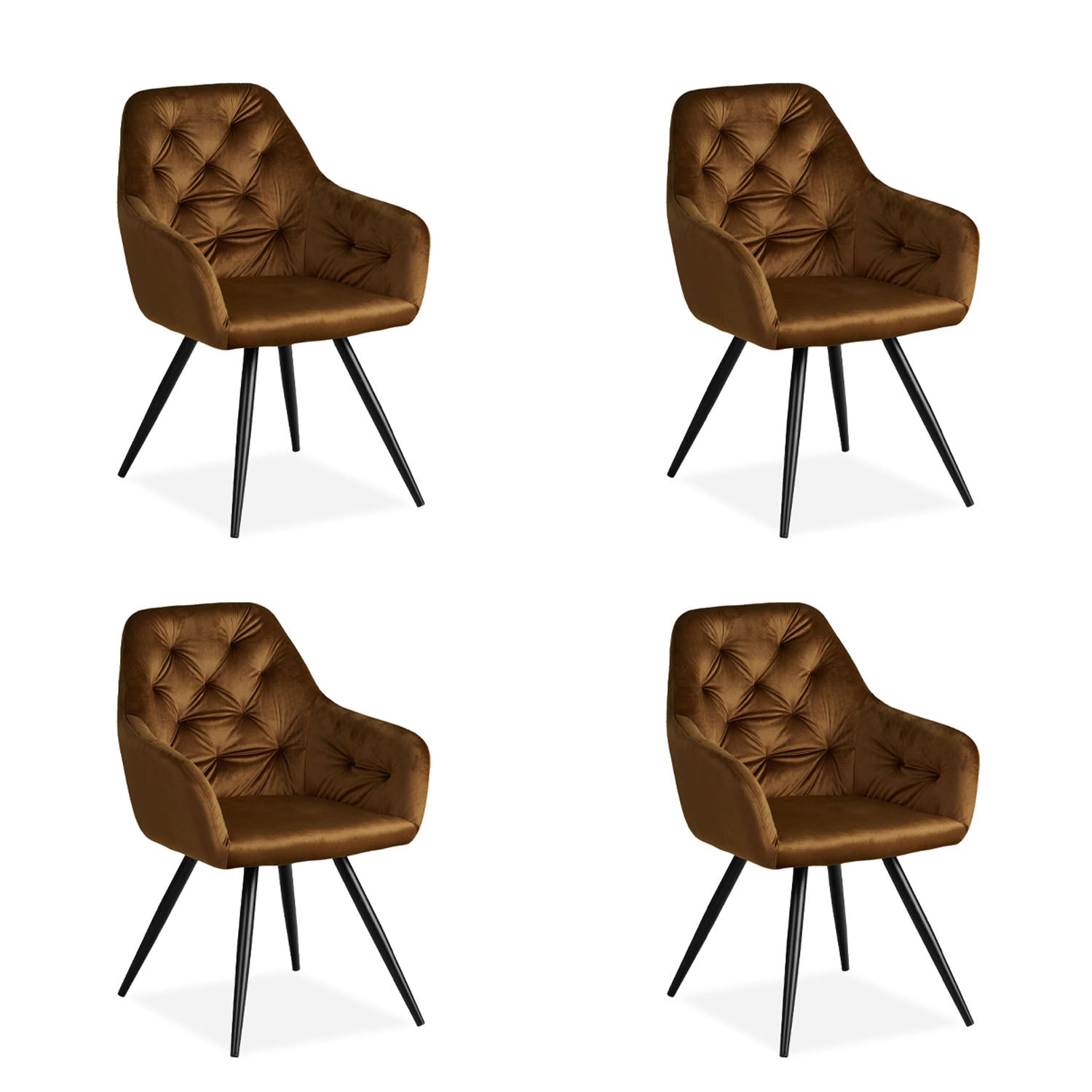 Lot de 4 chaises de salle à manger salon avec revêtement en velours confortable en marron CDS06205