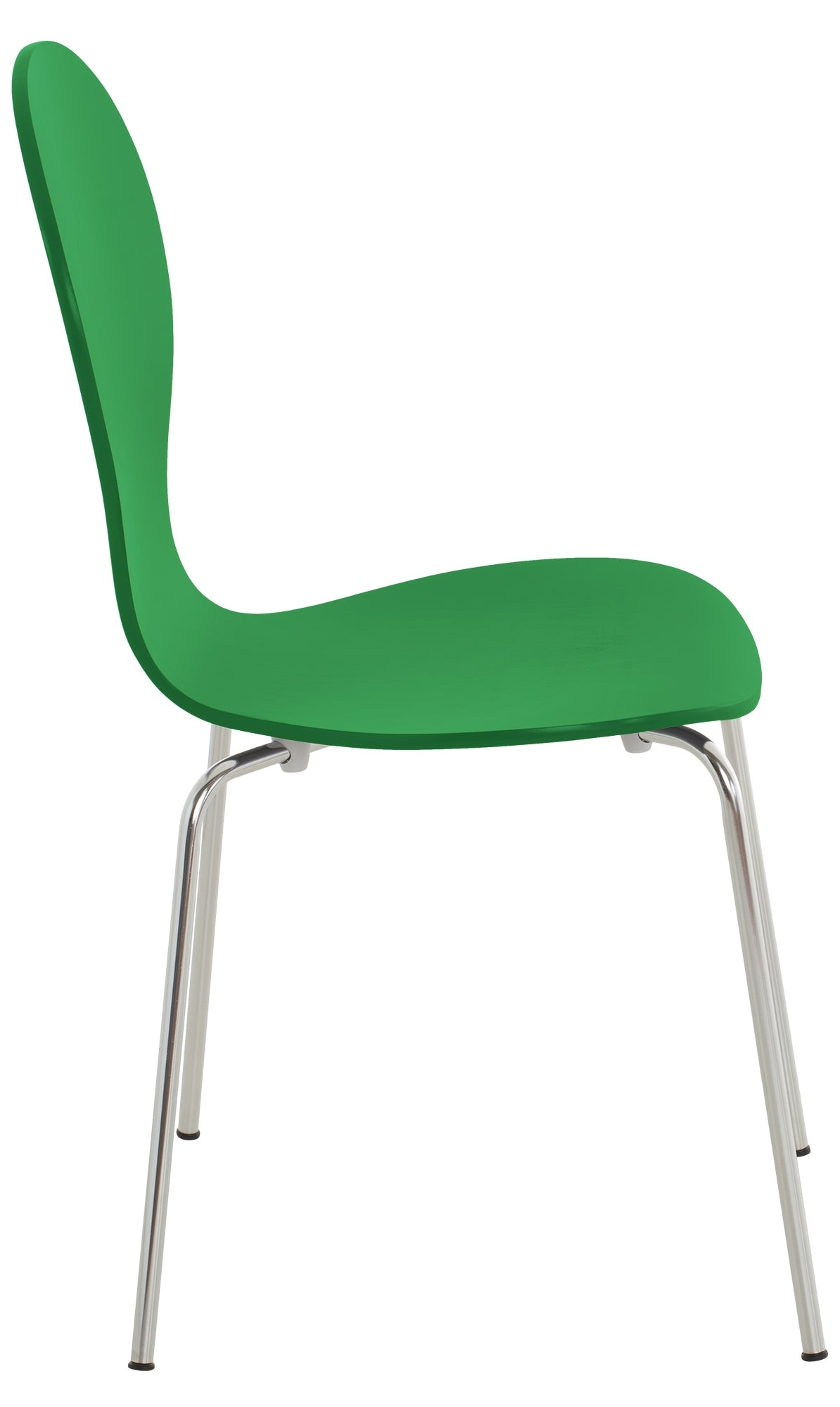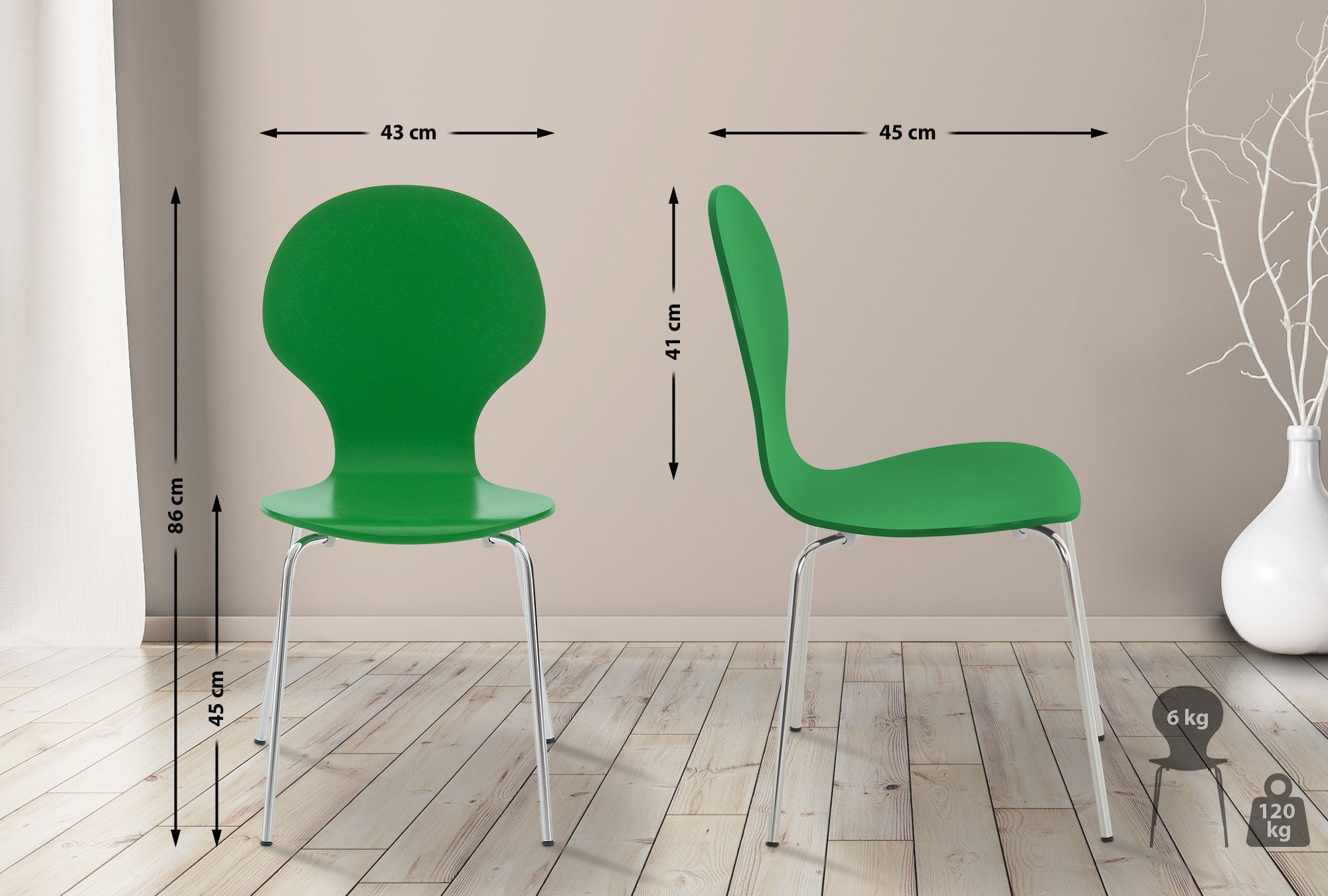 Lot de 4 chaises de cuisine salle à manger empilables dossier arrondi en bois vert et métal chromé 10_0003176