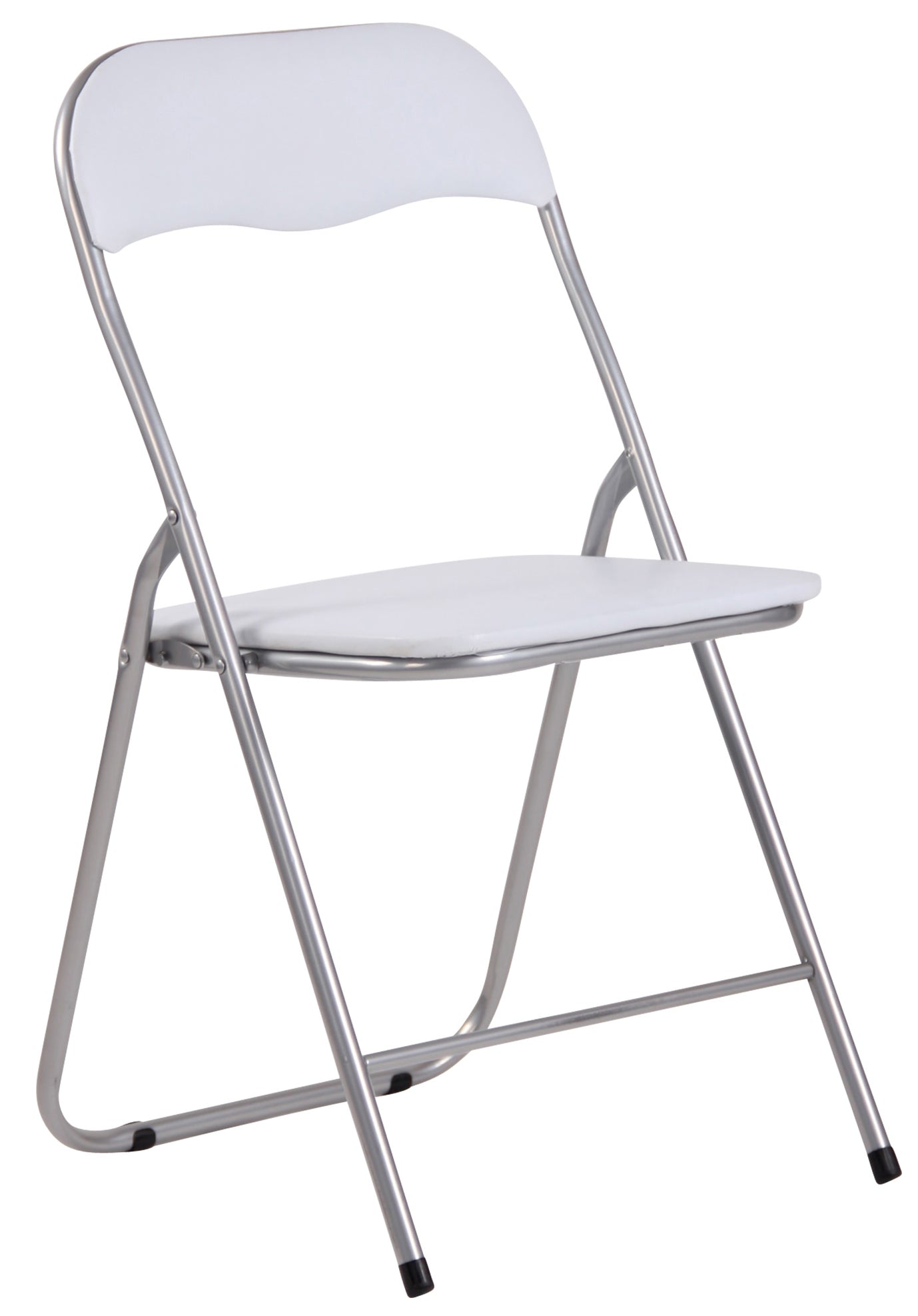 Lot de 4 chaises d'appoint cuisine pliable en métal argenté et PVC blanc 10_0006374