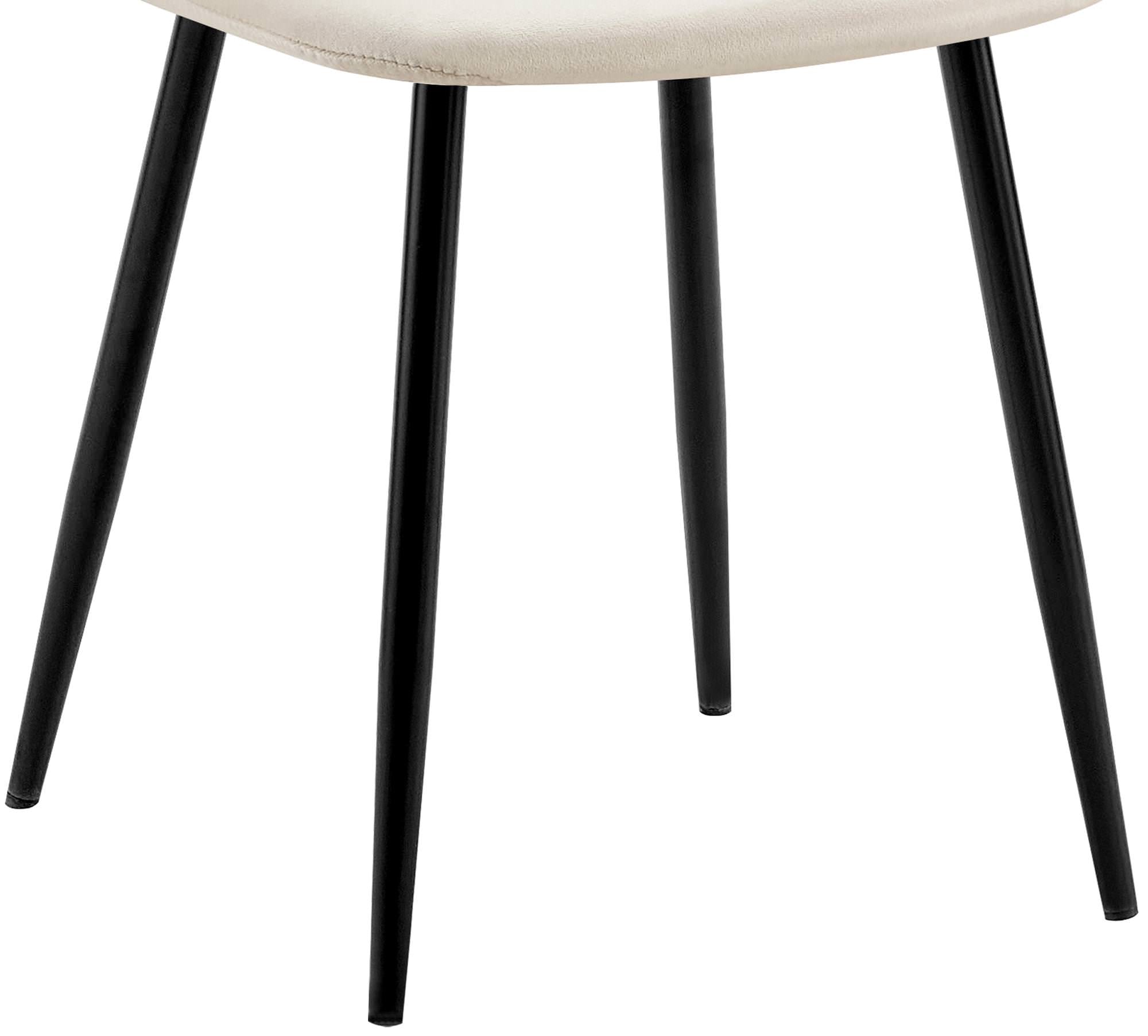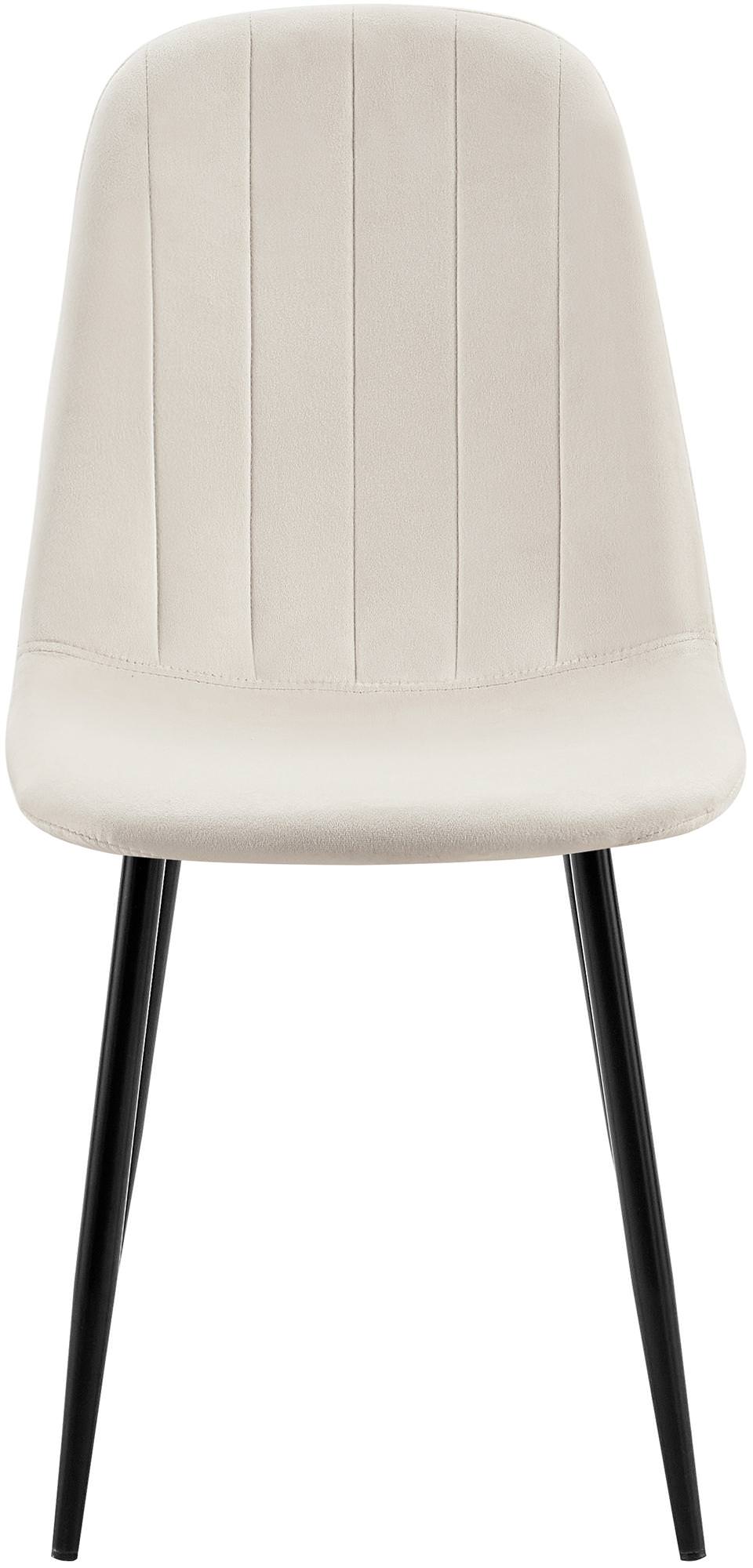 Set de 4 chaises de salle à manger coutures décoratives verticales en velours crème pieds en métal noir 10_0001752