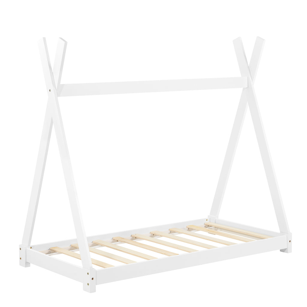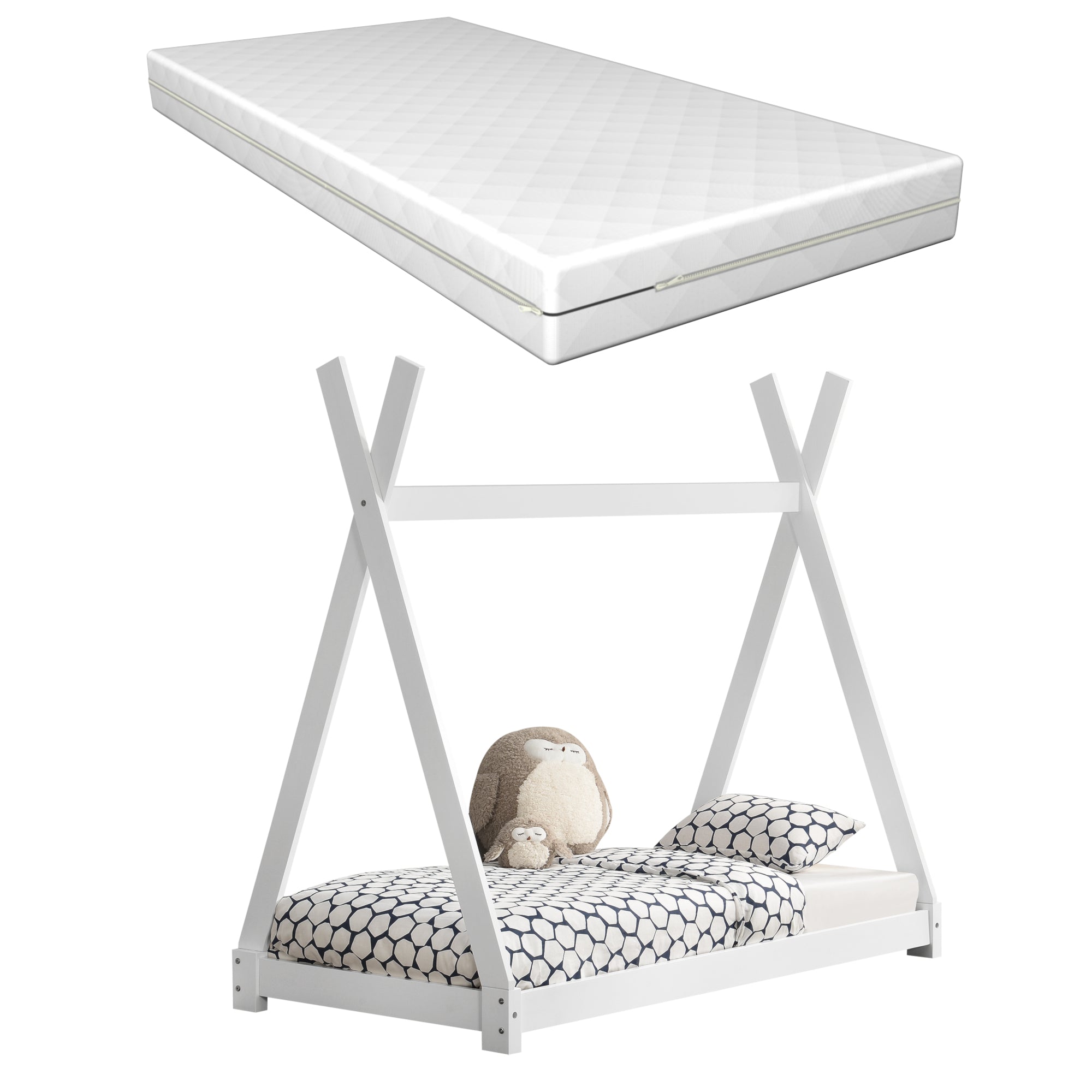 Lit tipi pour enfant avec matelas et sommier à lattes bois de pin blanc 80x160 cm 03_0002646