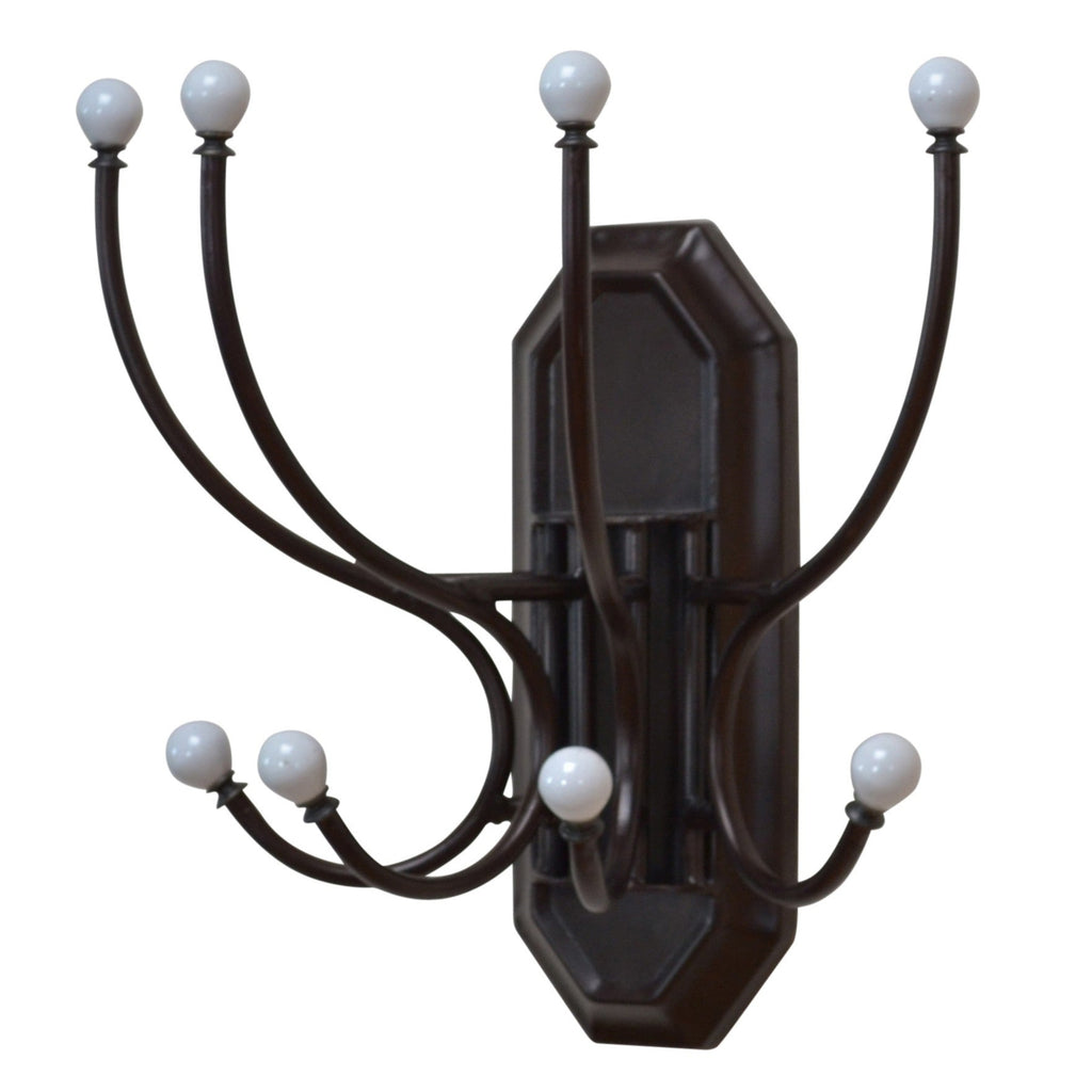 Porte-manteau mural en métal marron avec 4 crochets doubles MED05012