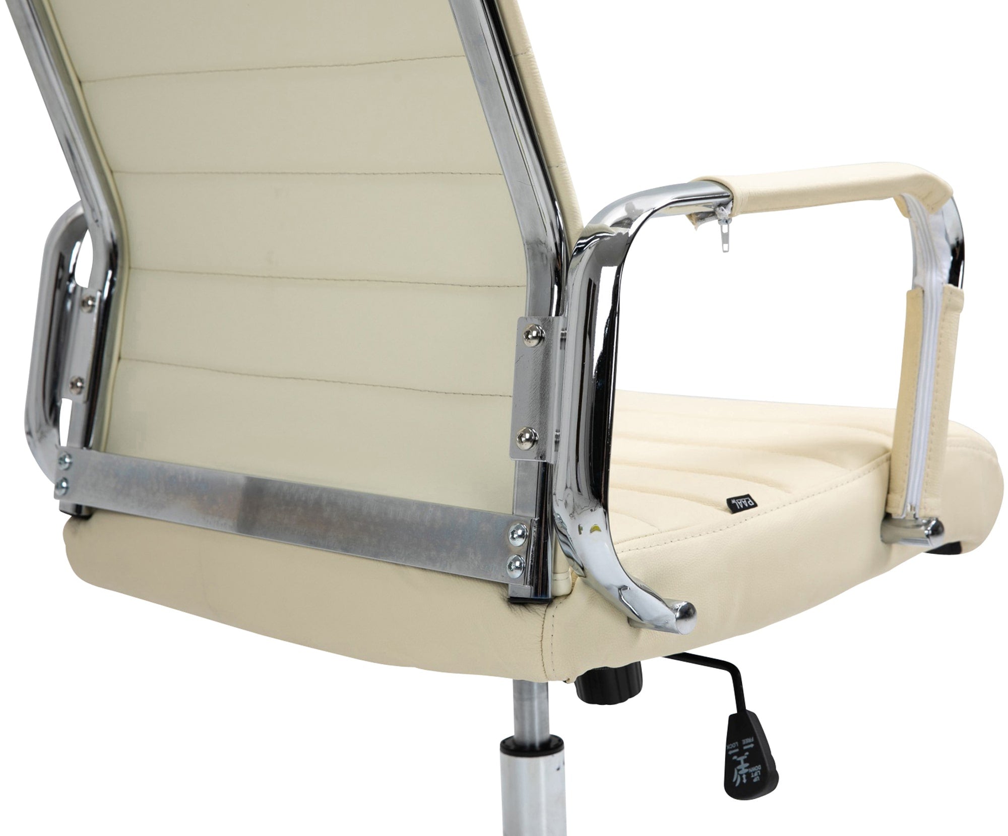 Fauteuil de bureau avec accoudoirs siège pivotant mécanisme à bascule en cuir véritable crème 10_0002517