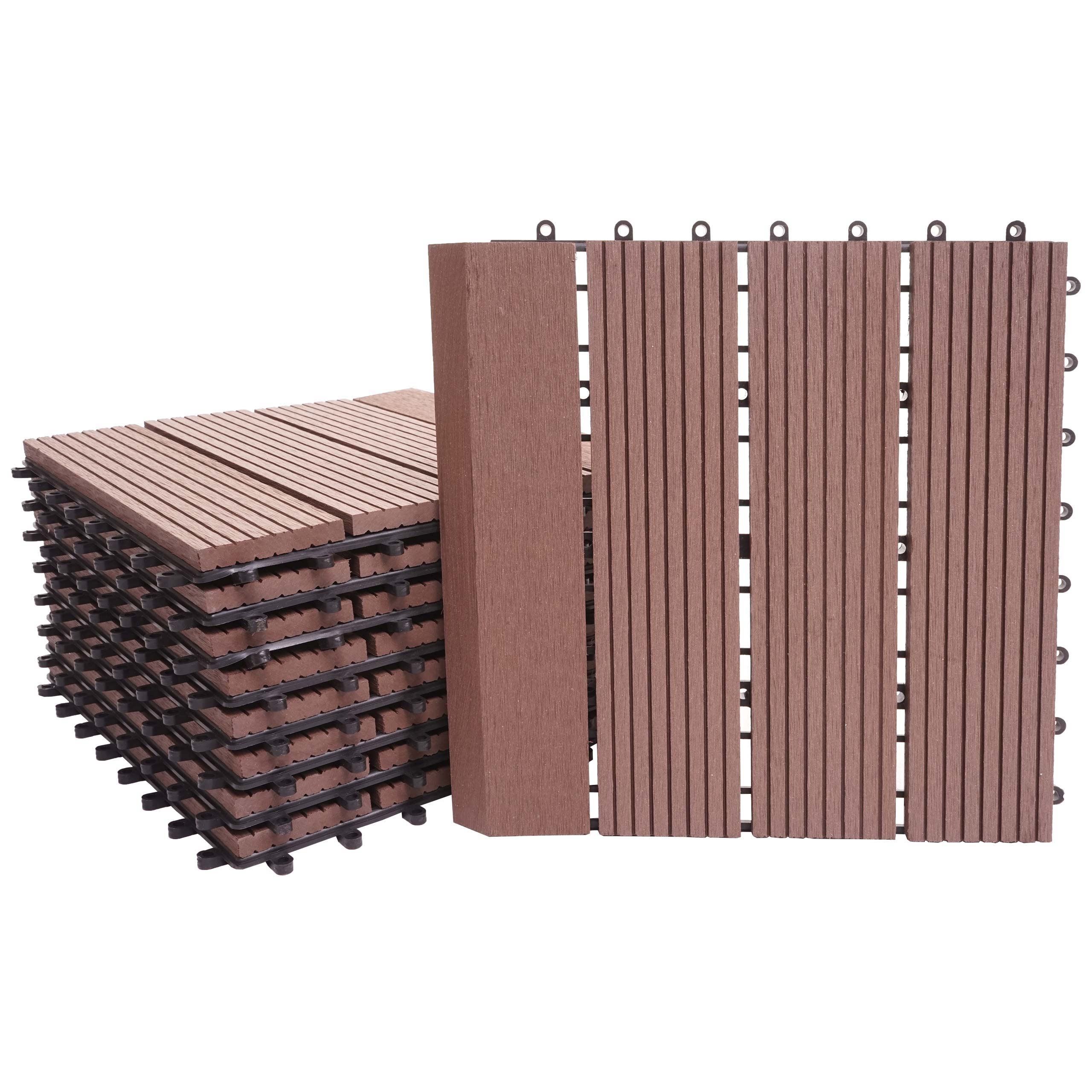 11x dalles carrelage WPC finition aspect bois balcon/terrasse 30 x 30 cm = 1 m² couleur café linéaire vertical 04_0006196