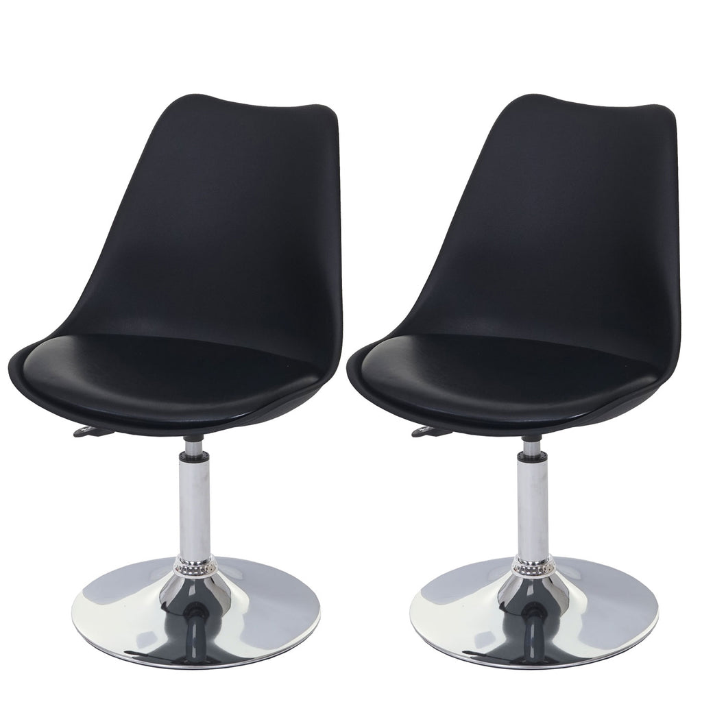 Lot de 2 chaises pivotantes chaise de cuisine réglable en hauteur en PVC noir piètement chromé 04_0000271