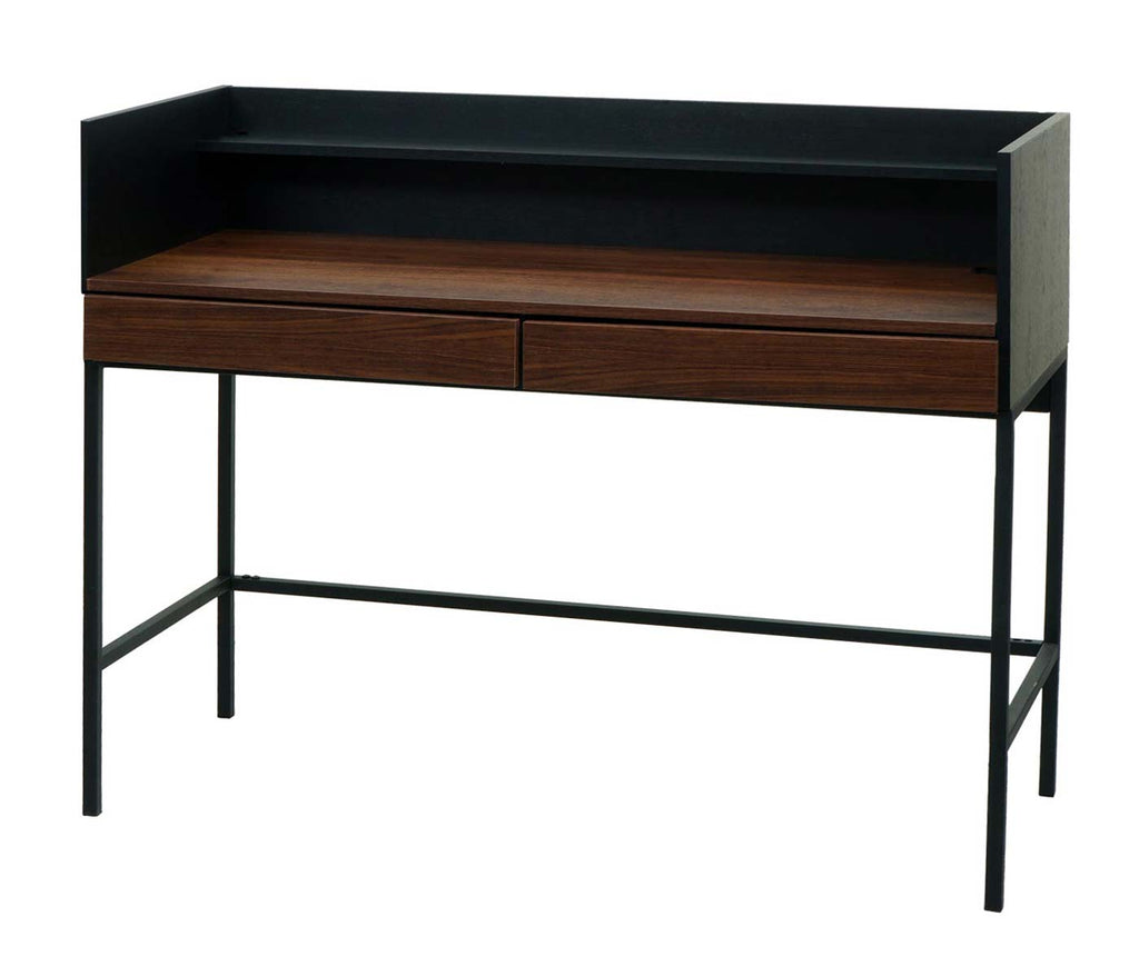 Bureau table d'ordinateur avec 2 tiroirs et espace de rangement 120x50 cm MDF aspect noyer et métal 04_0006057