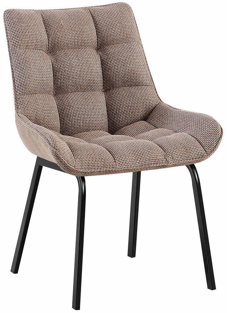 Chaise de salle à manger x1 en tissu marron terre généreusement rembourrée piètement en métal noir 10_0007795