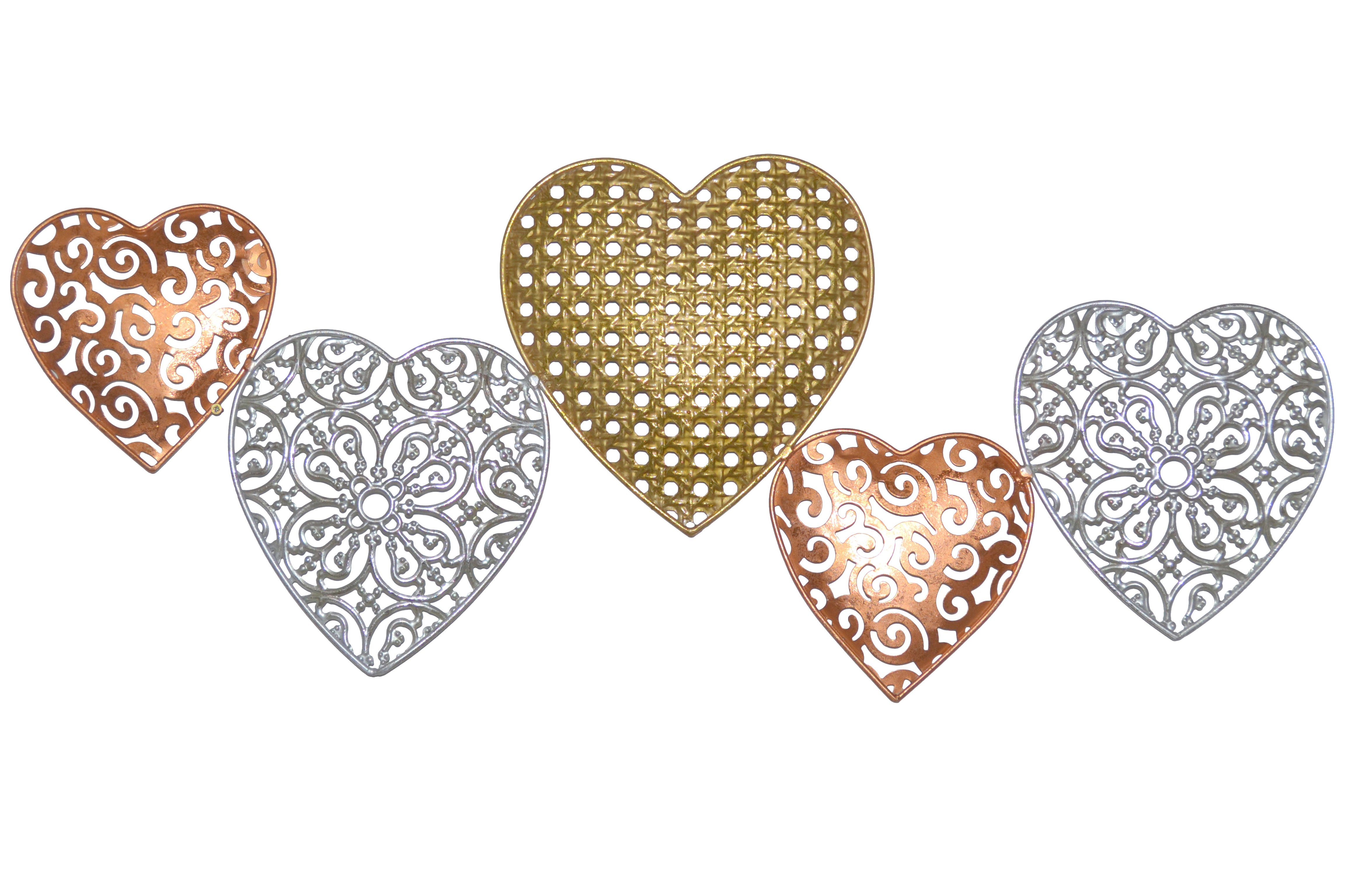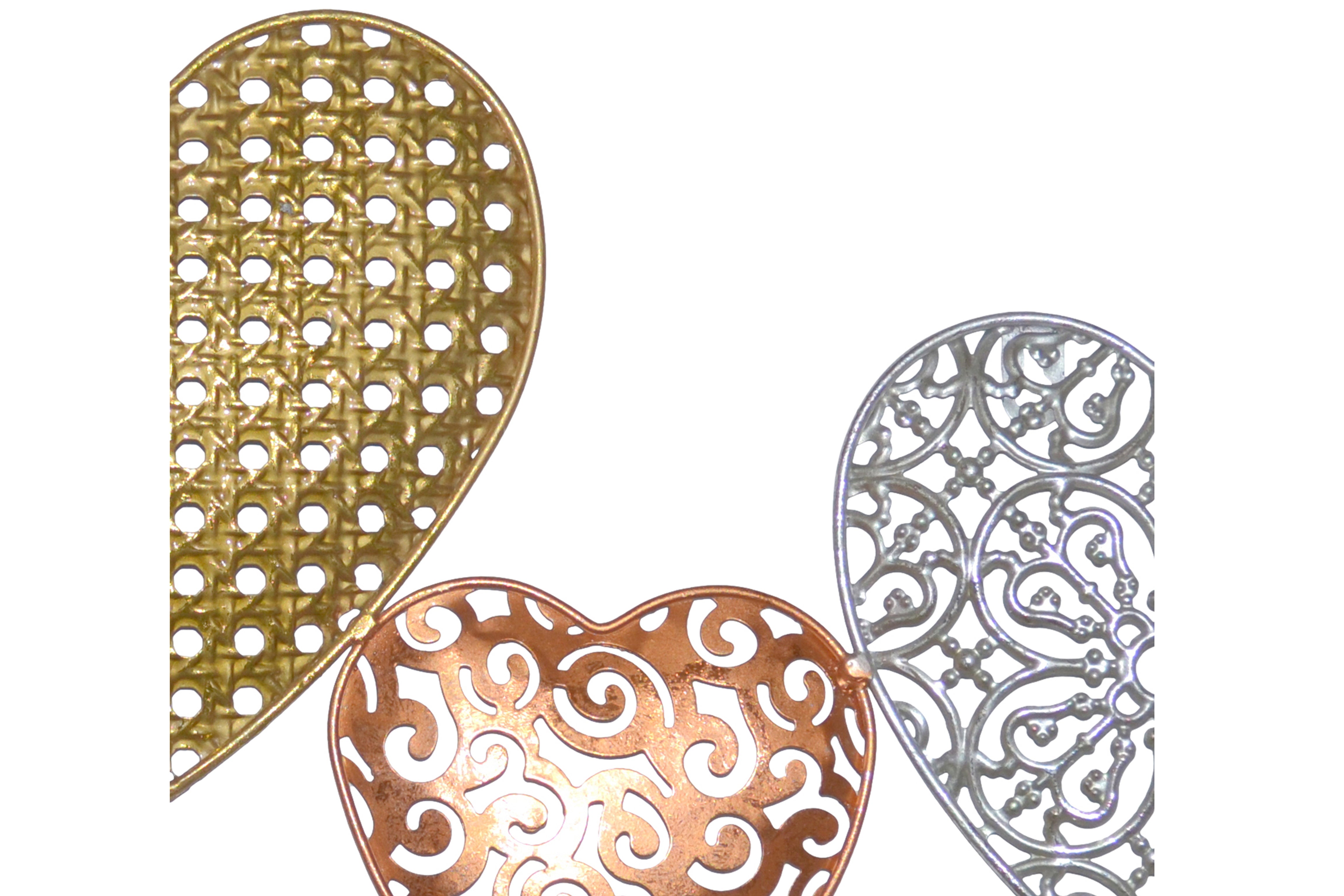 Décoration Murale « Cœurs » Trio Métallique Cuivre, Or et Argent DEC050020