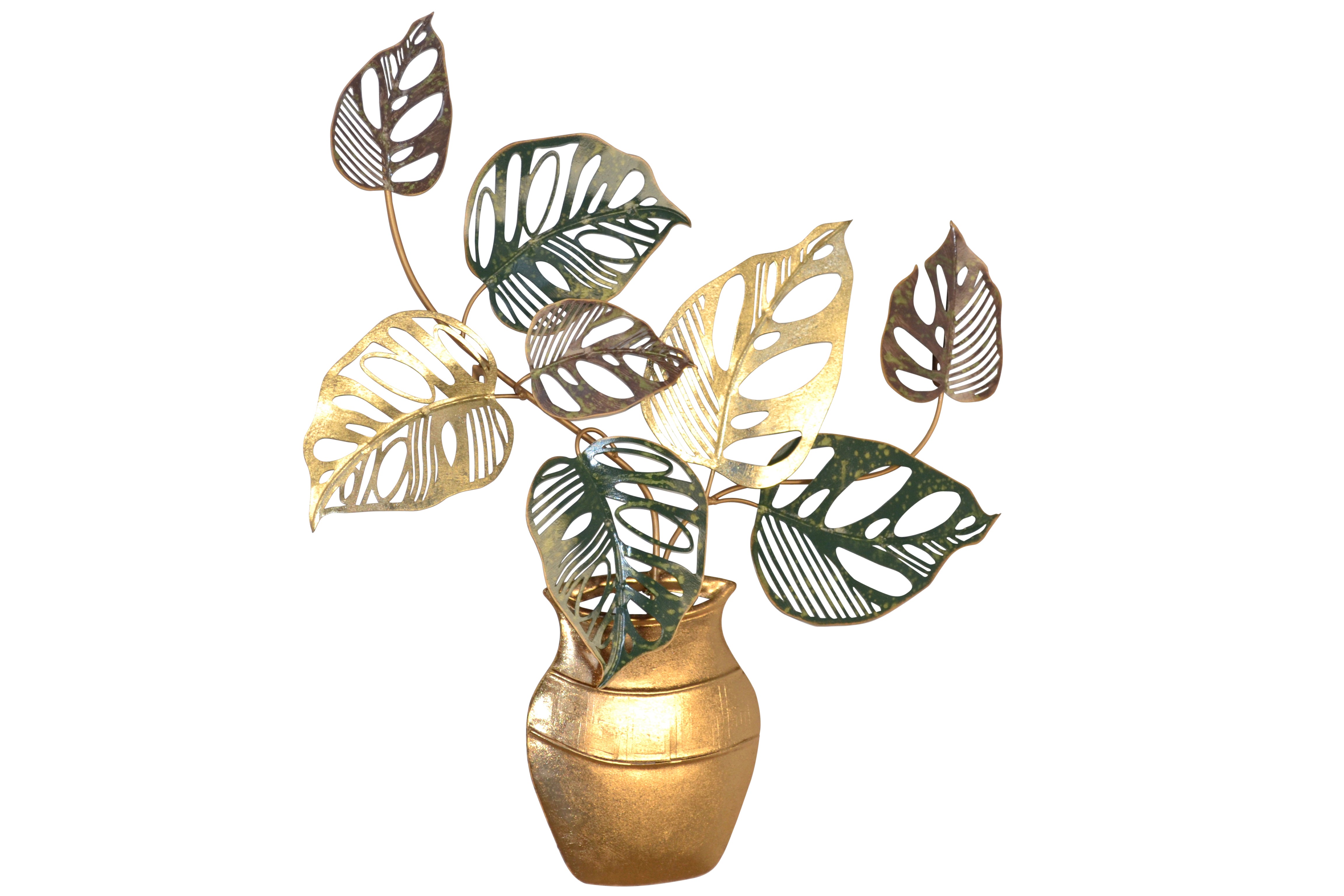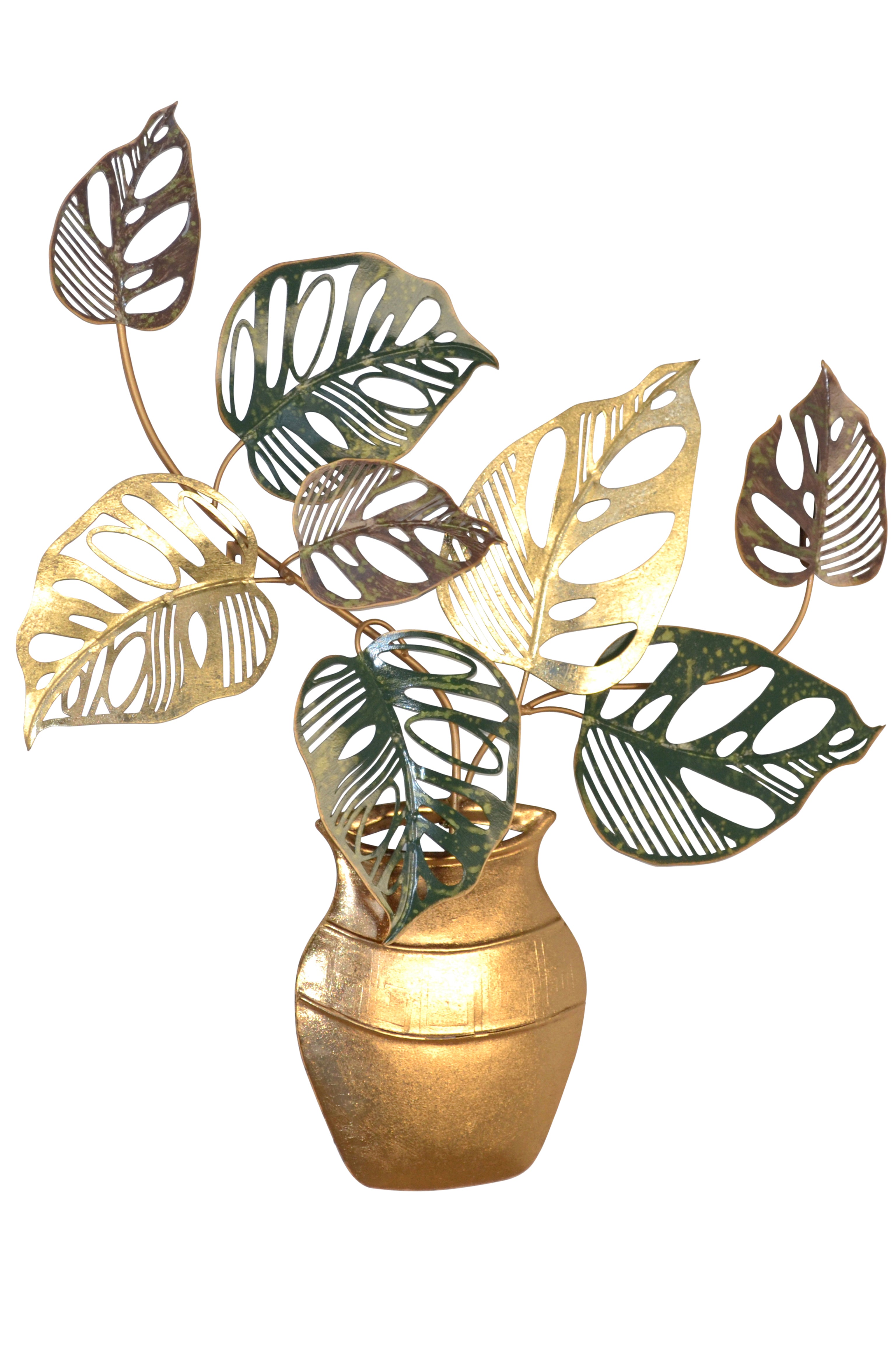 Décoration murale plante en pot – Métal doré et vert 64 x 4 x 70 cm DEC050025