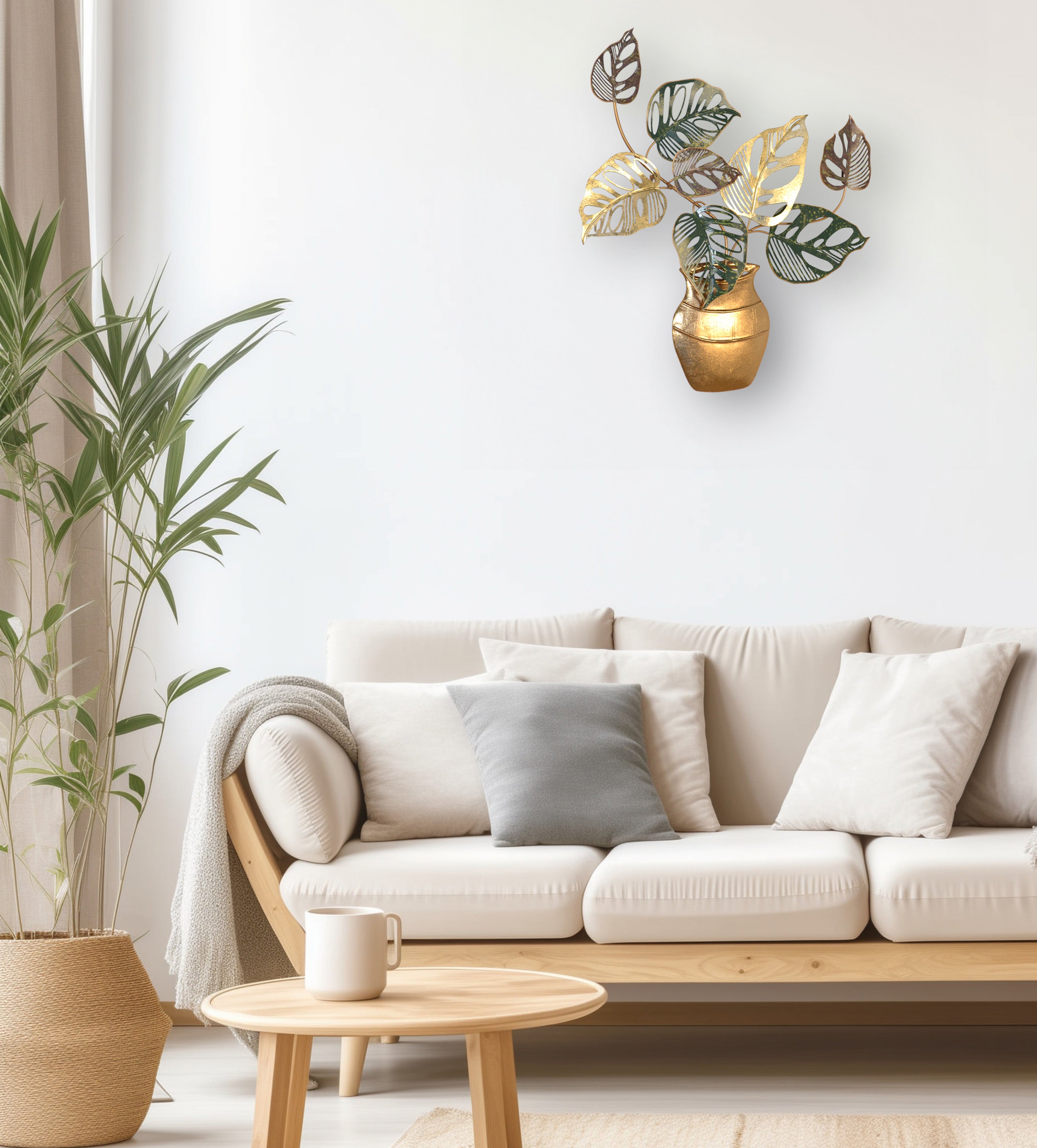 Ajoutez une note végétale chic à votre décoration intérieure avec cette élégante plante en pot murale en métal. Ses finitions dorées et vertes lui confèrent un style à la fois naturel et sophistiqué, parfait pour sublimer vos murs avec originalité. Idéale dans un salon, un bureau ou une entrée, elle apporte une touche de verdure sans entretien, tout en restant décorative et tendance.