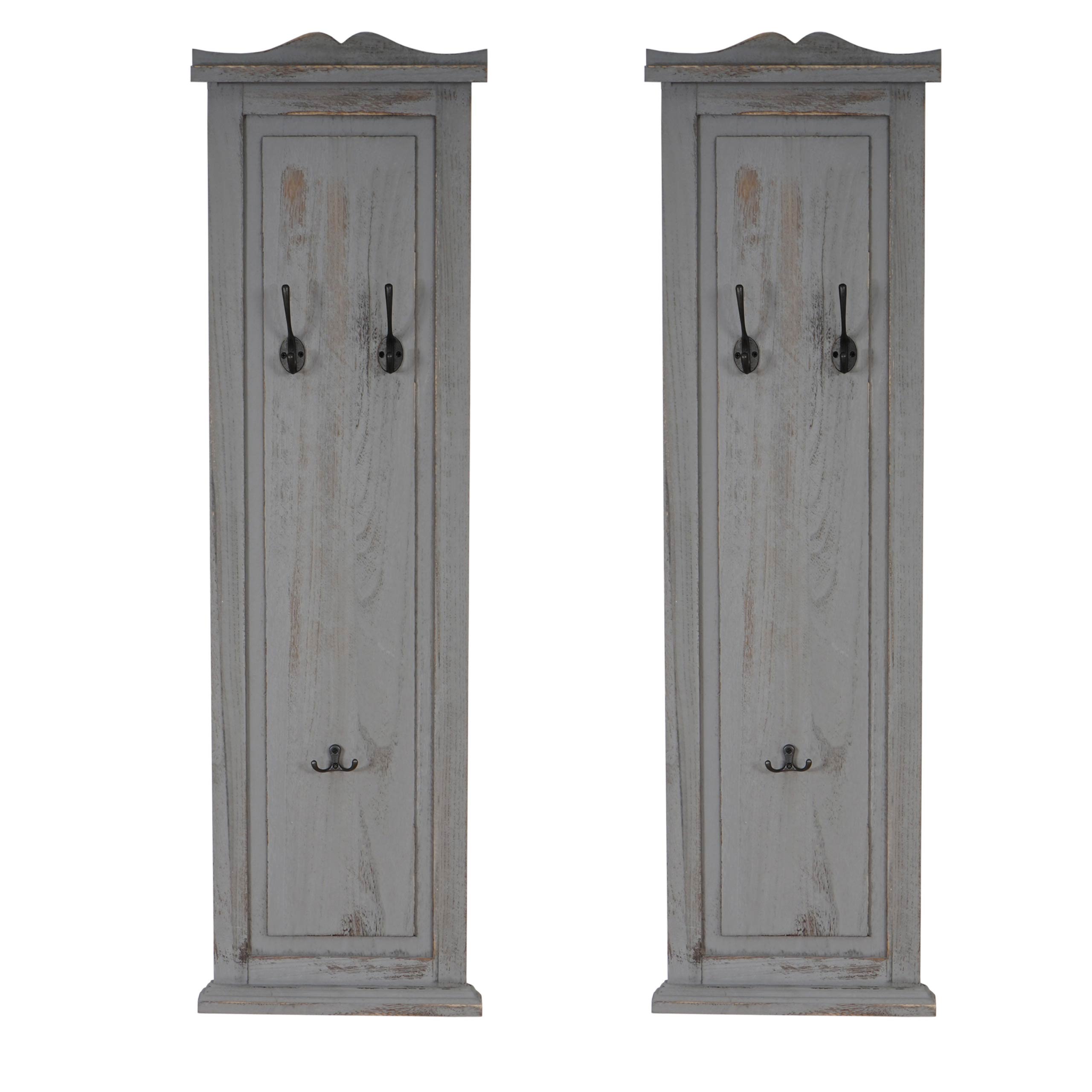 2x porte-manteaux muraux panneau avec 3 crochets 109x28x4 cm en bois gris vieilli 04_0007418