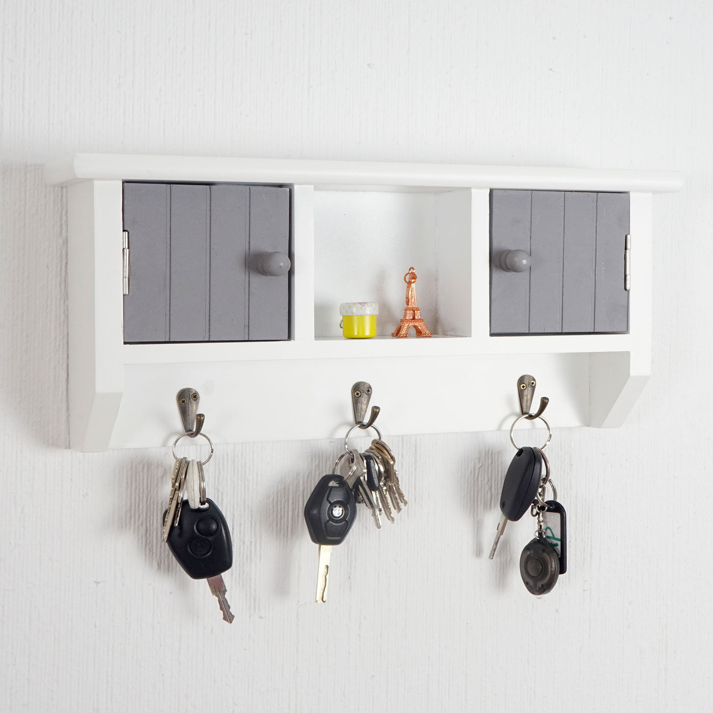 Porte-clés murale avec portes, bois massif certifié FSC gris-blanc