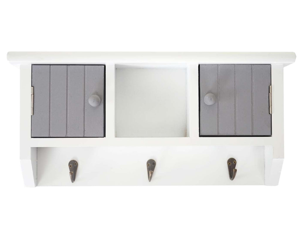 Porte-clés meuble d'entrée mural avec portes et étagère en bois massif gris-blanc 04_0003587