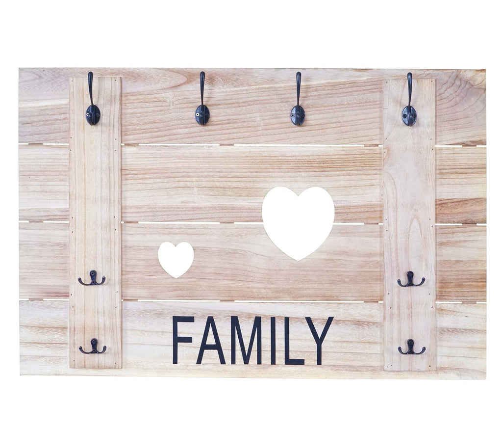 Porte-manteau mural family panneau avec 8 crochets 60 x 90 cm design vintage bois marron naturel 04_0008175