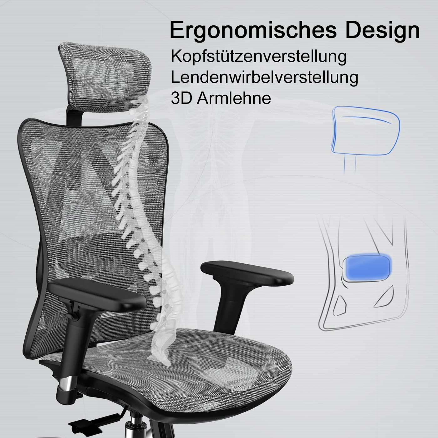 Fauteuil de bureau siège et dossier de forme ergonomique siège pivotant et réglable revêtement en maille gris 04_0006217
