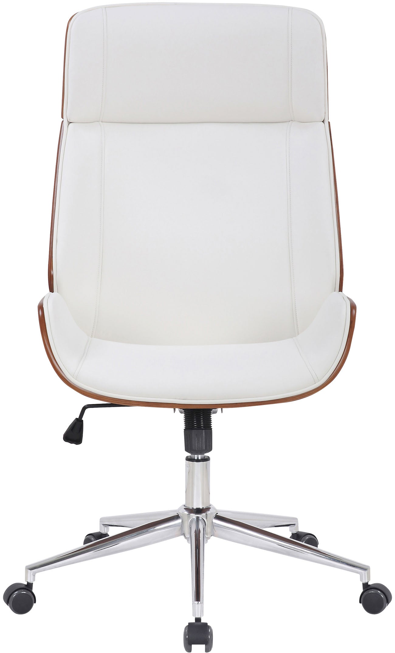 Fauteuil de bureau dossier haut avec roulettes synthétique blanc et bois noyer hauteur réglable BUR10455