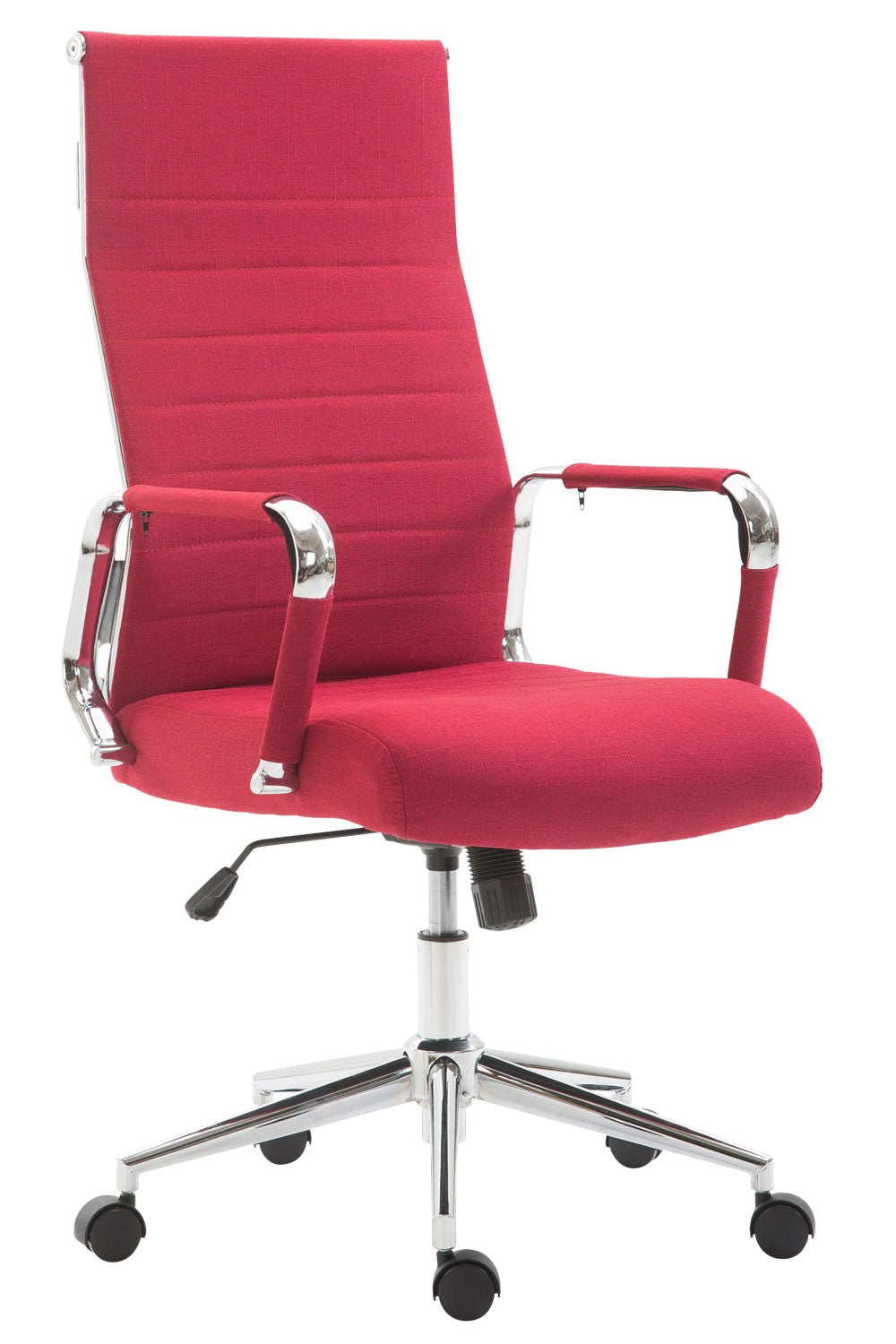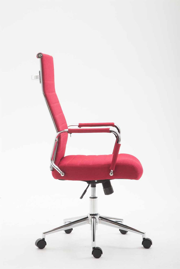 Fauteuil de bureau sur roulettes en tissu rouge avec assise rembourrée pivotant BUR10236