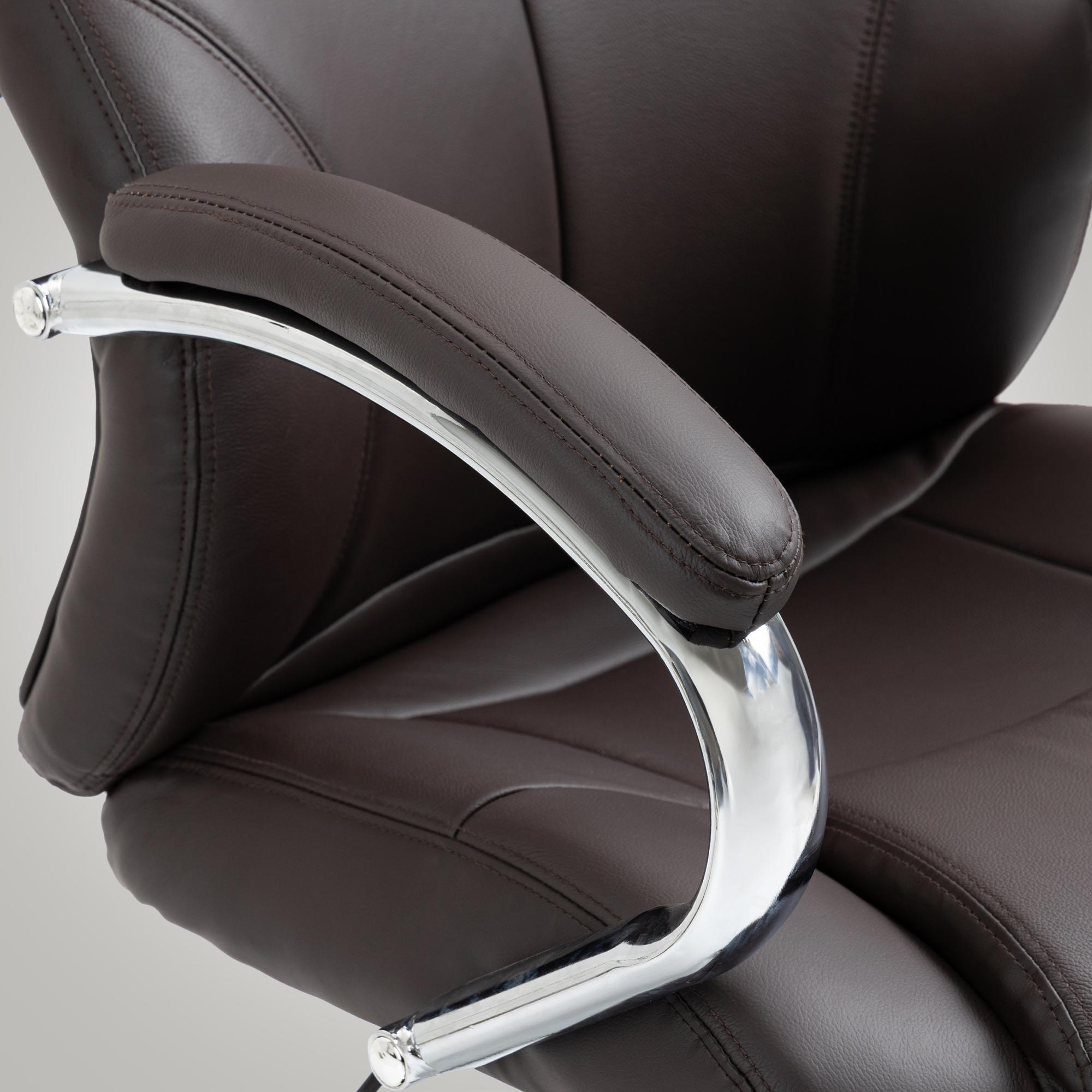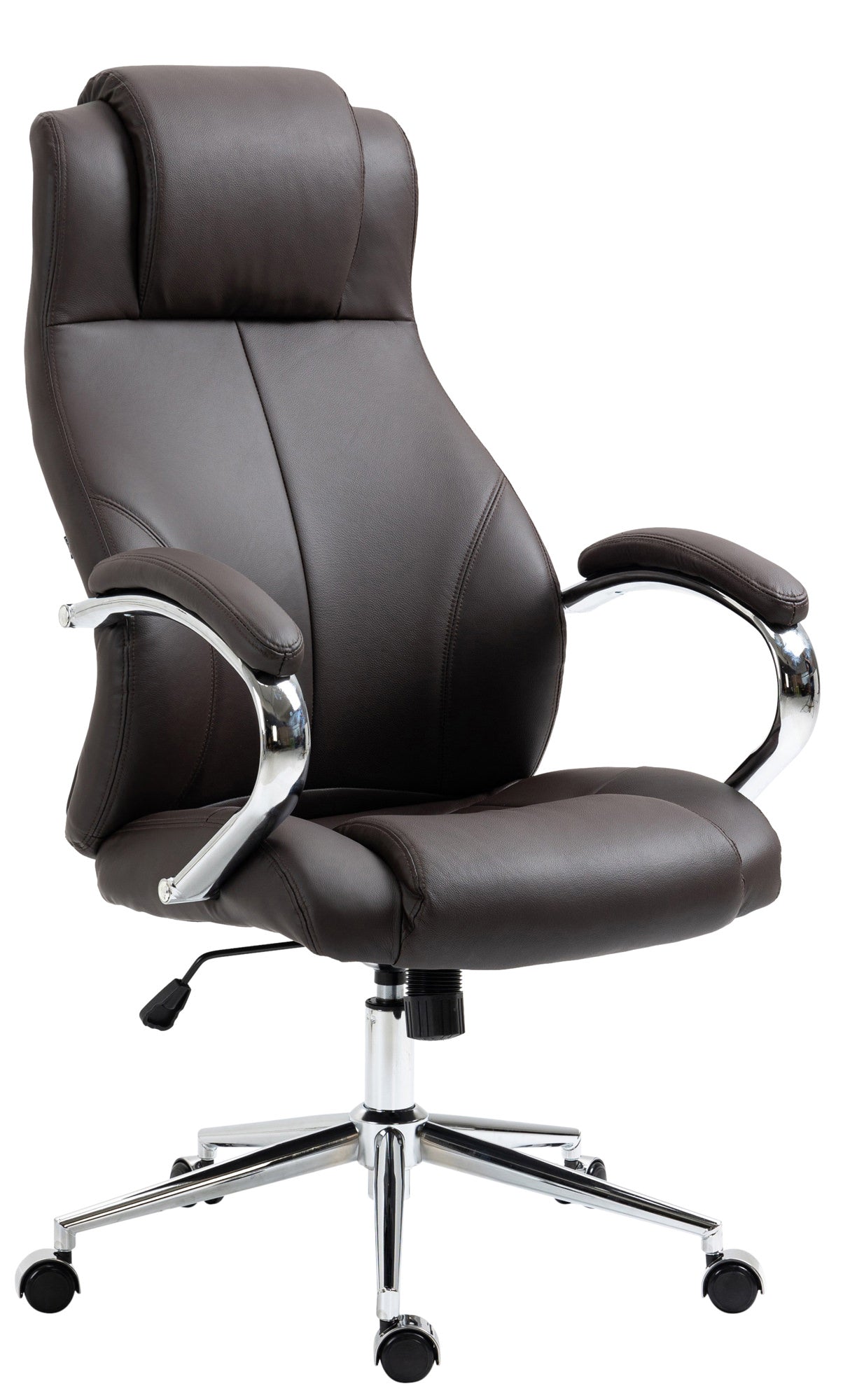 Fauteuil de bureau sur roulettes avec accoudoirs forme ergonomique en véritable cuir marron et métal chromé 10_0002643