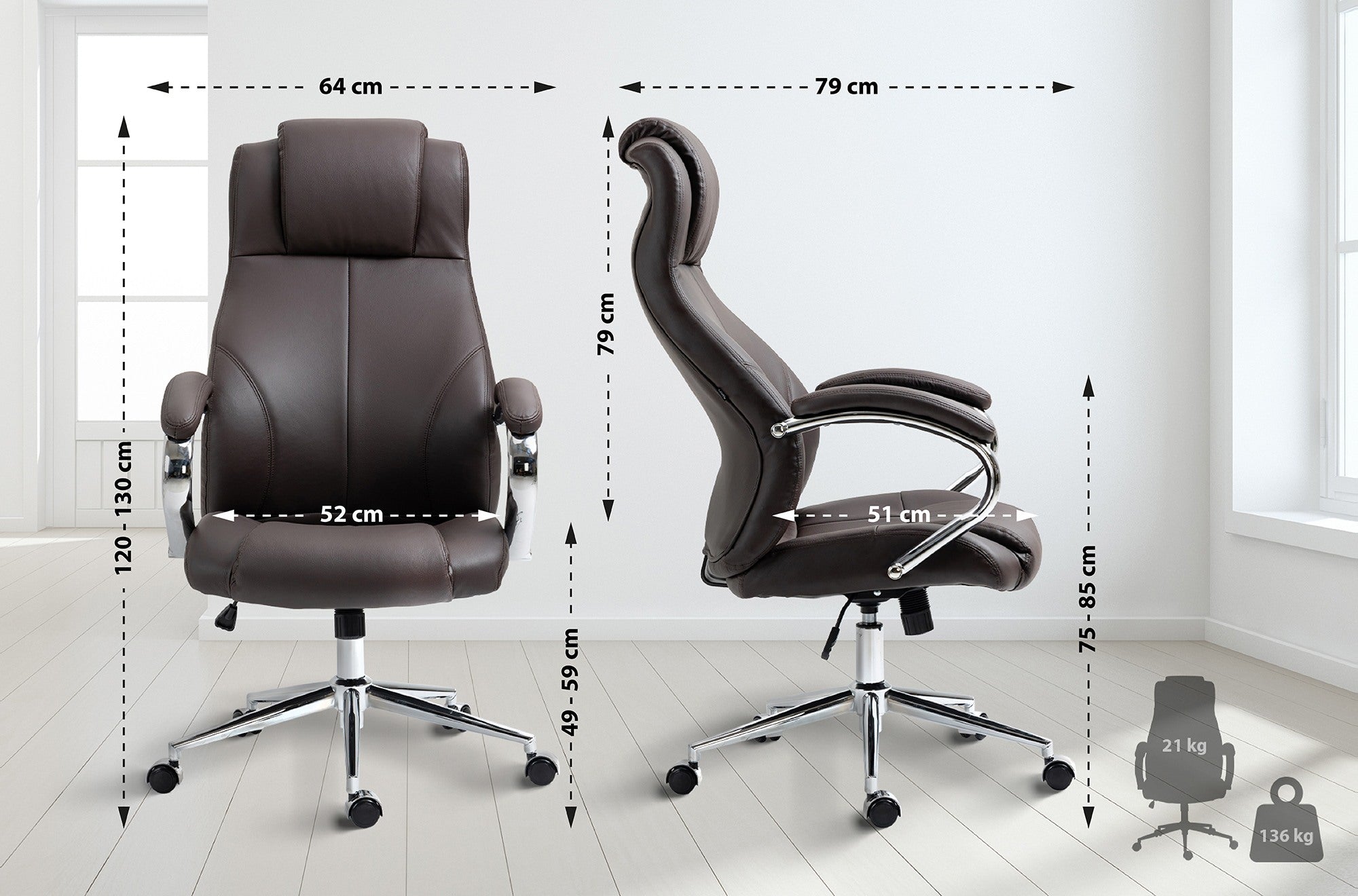 Hauteur accoudoirs: 75 - 85 cm